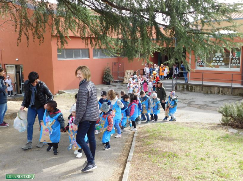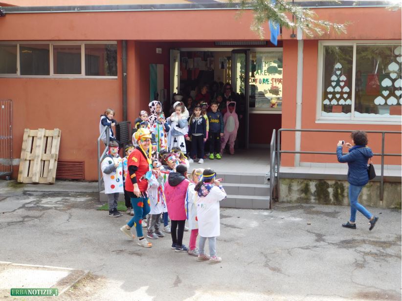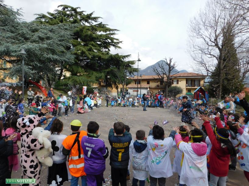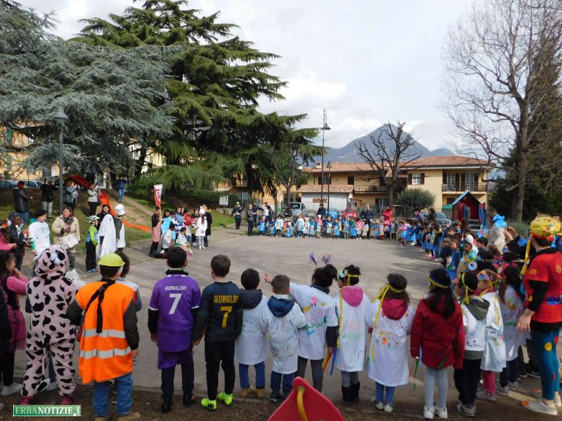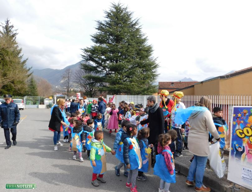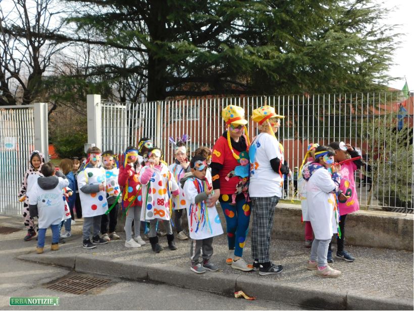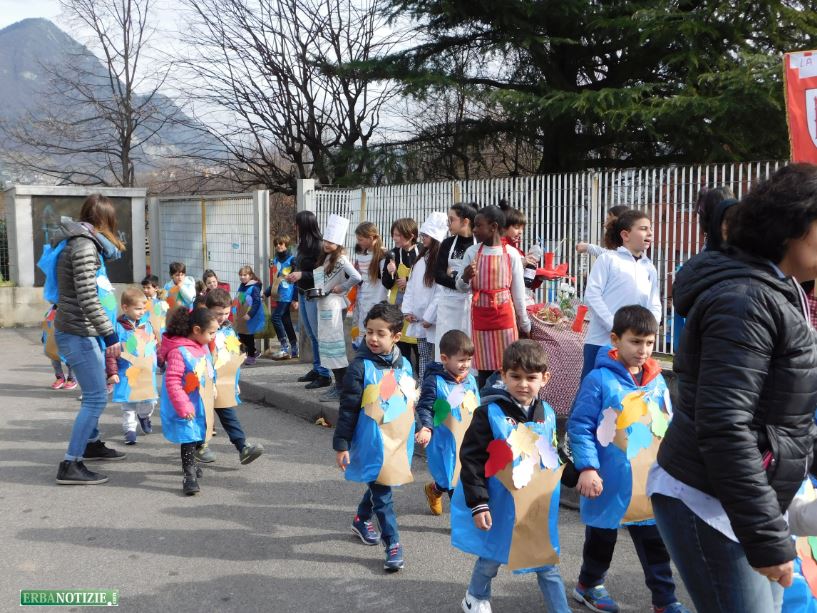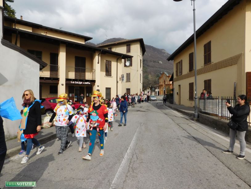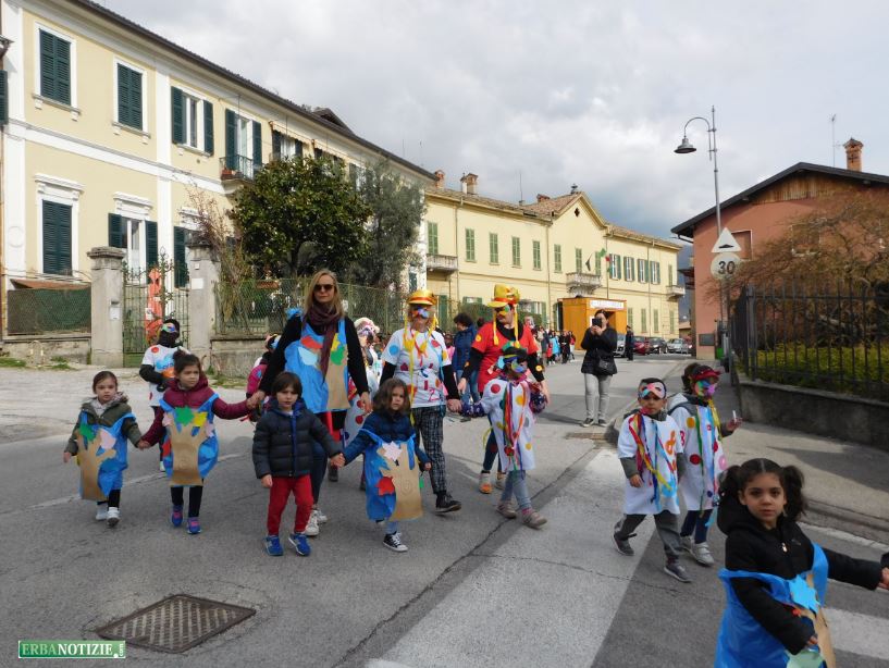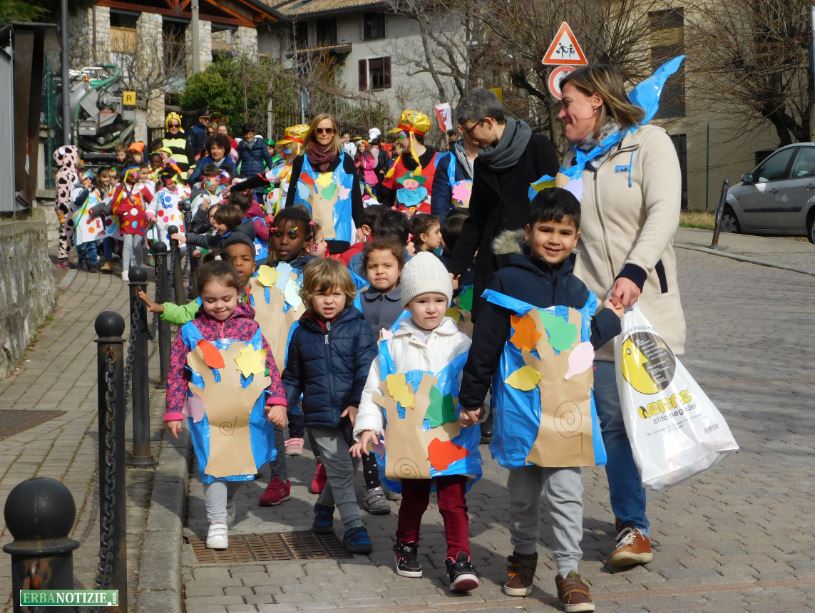 ERBA – Una grande sfilata piena di colori e sorrisi ha attraversato questa mattina, mercoledì, le vie della frazione di Crevenna: ad animare le strade gli alunni e le maestre della scuola dell’infanzia e della primaria che hanno festeggiato oggi il Carnevale. Ideati e realizzati da loro i costumi.
