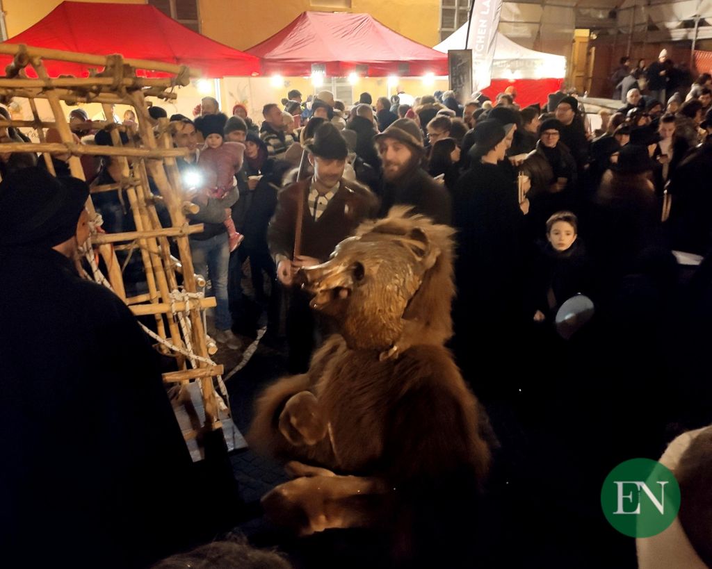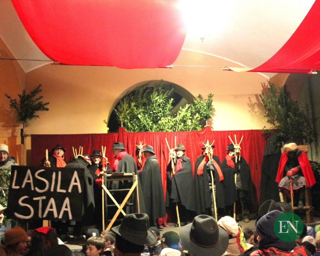 Centinaia le persone che si sono date appuntamento sotto ai portici della Chiesa per assistere al processo -rigorosamente in dialetto – alla sfortunata Giubiana, ritenuta colpevole di tutte le sfortune e le disgrazie accadute durante l’anno appena trascorso.