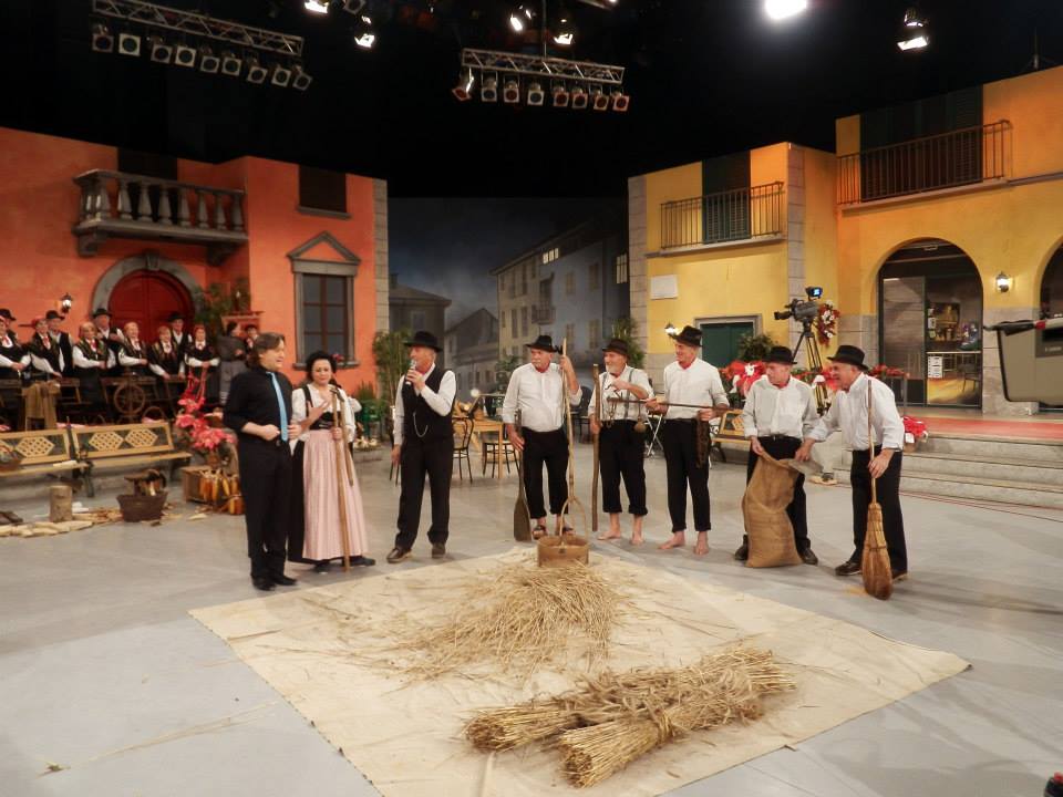 Gli albavillesi, vestiti di tutto punto e con i loro attrezzi, si sono trasferiti negli studi televisivi per la registrazione del programma “Canta Lombardia”.