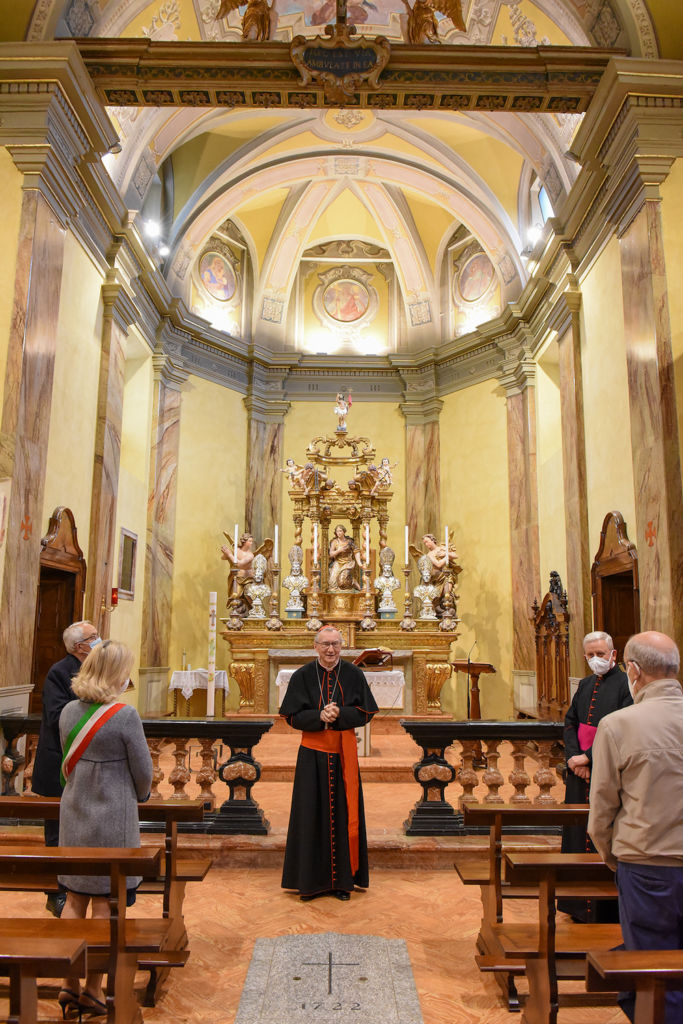 Il momento successivo si è svolto nella chiesa di Sant’Eufemia, dove il Prevosto ha rivolto il suo saluto al cardinale Parolin, ringraziandolo per la visita, illustrando sinteticamente le origini della chiesa, “luogo che affonda le sue radici nella storia”, e presentando le realtà consigliari e associative presenti: il Consiglio direttivo degli Amici di Monsignor Aristide Pirovano, il Consiglio pastorale e il Consiglio per gli affari economici della Comunità pastorale e l’Associazione “Quej del Masigott”.