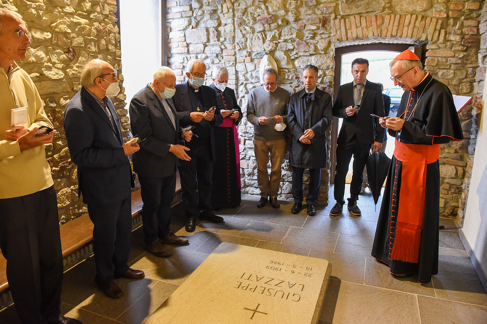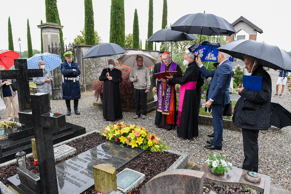 Poi il Cardinale ha proseguito per l’Eremo di San Salvatore. Qui ha pregato sulla tomba del Venerabile Giuseppe Lazzati insieme ad alcuni membri dell’Istituto Secolare Cristo Re da lui fondato. Il Segretario di Stato ha evidenziato l’importanza e la bellezza della vocazione dei fedeli laici nella Chiesa e nel mondo. Ha poi potuto apprezzare l’antica chiesa dell’Eremo, dove si trova un prezioso affresco che rappresenta la Crocifissione di Gesù, attribuito al pittore lombardo Michelino da Besozzo, considerato uno dei maggiori esponenti del gotico internazionale in Italia. Dall’Eremo il Cardinale si è recato al Cimitero maggiore, dove è stato accolto dai responsabili dell’Associazione Amici di Monsignor Aristide Pirovano, che l’hanno condotto alla tomba del Vescovo missionario, dove si erano già riuniti diversi fedeli. Qui il Cardinale ha presieduto un momento di preghiera in memoria di padre Aristide.