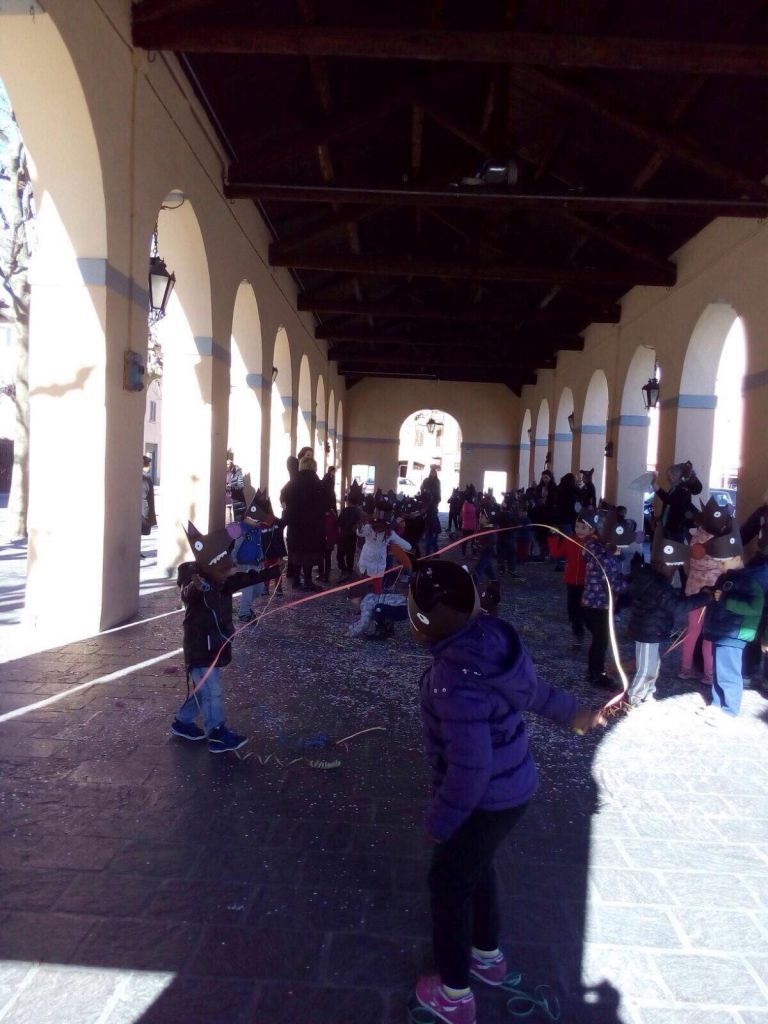 Mercoledì 1 marzo invece tutti i bambini della scuola, rigorosamente mascherati, hanno fatto un giro per Erba fermandosi poi in Piazza Mercato.