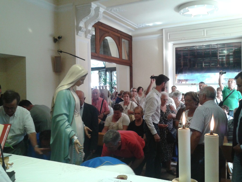 Per l’occasione tante persone si sono date appuntamento in villa Irma per salutare la statua che lasciava Arcellasco. Un lungo corteo di macchine, aperto e chiuso dai vigili di Erba e Albavilla, ha accompagnato poi la Madonnina nella sua nuova “casa”, in via Matteotti ad Albavilla. Lì la statua è stata accolta tra gli applausi e i canti e, dopo l’ingresso della Madonna, si è proceduto con l’inaugurazione della nuova sede di Radio Mater e la messa.