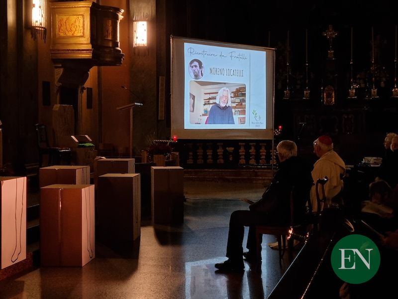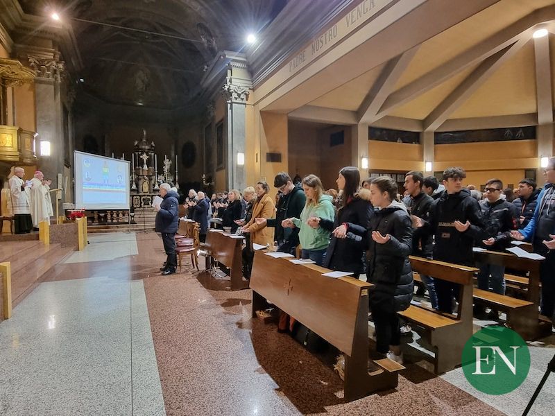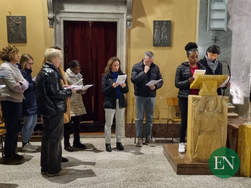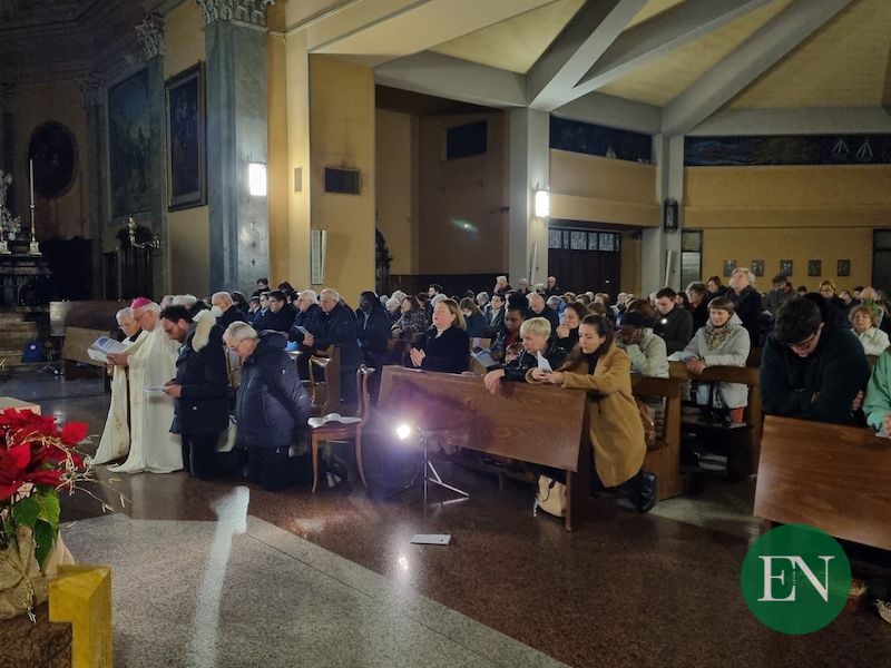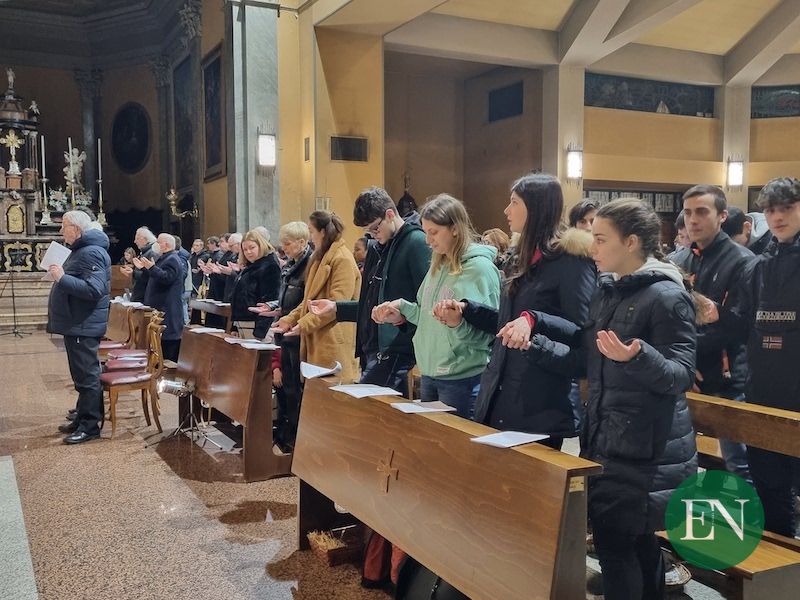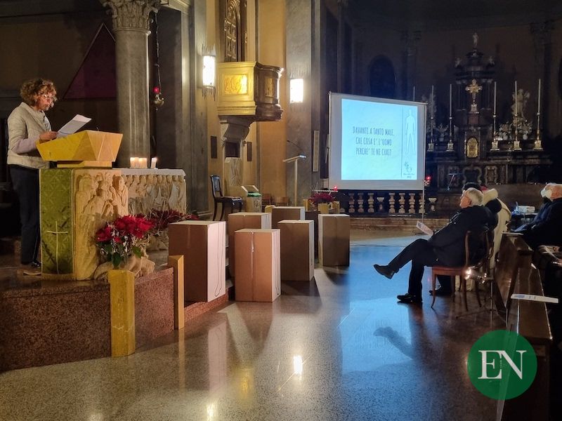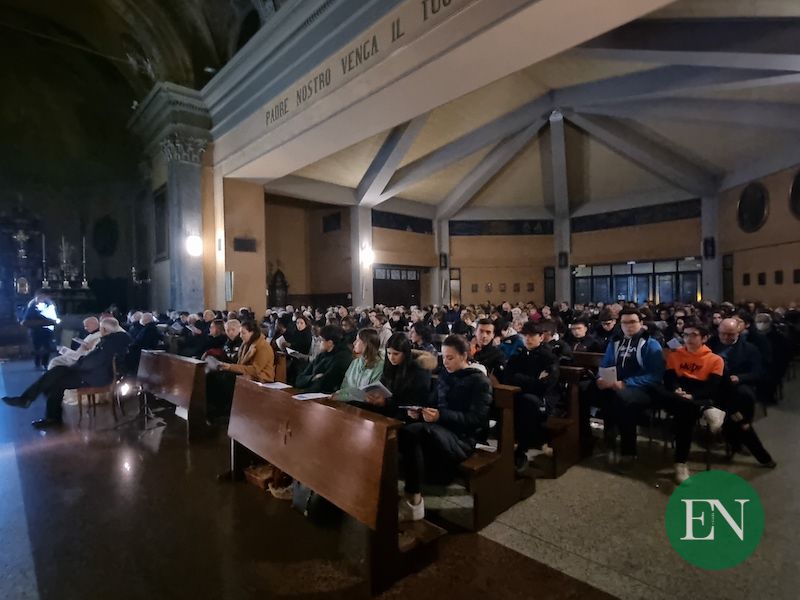 “Il nostro cuore – ha detto Don Ettore accogliendo i presenti insieme al prevosto Mons. Angelo Pirovano – è pieno di voglia di pregare ma anche di preoccupazione. Condividiamo questo momento con tanti amici, tra cui tante amiche ucraine con cui un anno fa abbiamo pregato allo scoppio del conflitto nel loro paese. Celebriamo anche i 60 anni dell’Enciclica Pacem in Terris di Papa Giovanni XXIII”.