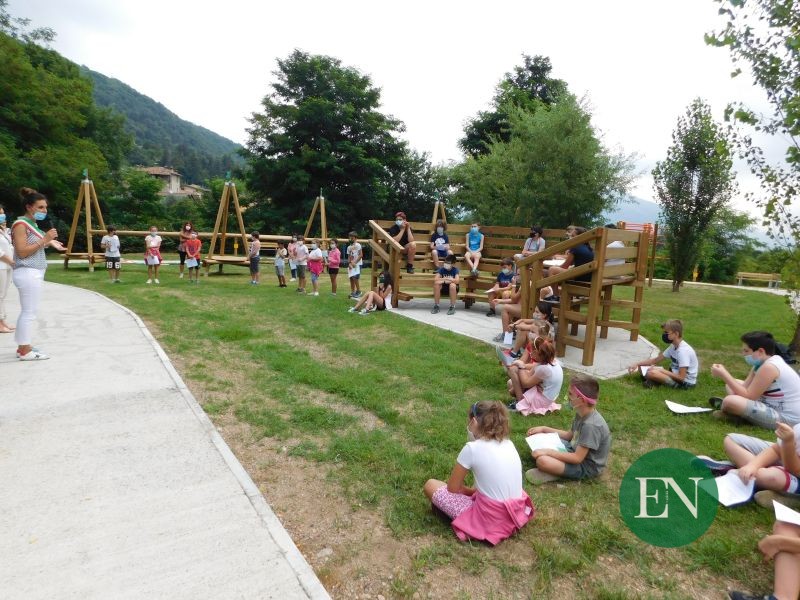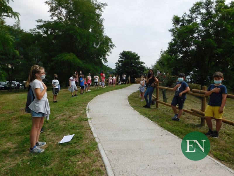 ALBAVILLA – “Vi ringrazio, bambini, perché avete mostrato come questo parco sia vivo solo con la vostra presenza”. Queste le parole con cui il sindaco di Albavilla, Giuliana Castelnuovo, si è rivolta ai bambini del centro estivo che questa mattina, mercoledì, hanno partecipato all’inaugurazione del nuovo parco “Verde in gioco”, realizzato all’interno dell’area verde tra le scuole “Kennedy” e l’Opera Pia Roscio, residenza per anziani, in frazione Molena.