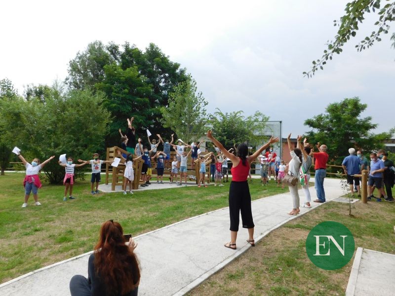 La parola è poi passata ai bambini che hanno voluto salutare, a braccia alzate, l’apertura del nuovo parco sulle note di “Ma il cielo è sempre più blu” per lanciare così un messaggio di speranza e di allegria a fronte delle tante difficoltà incontrate durante i mesi dell’emergenza sanitaria.