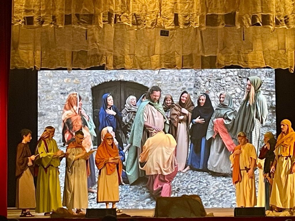 Ai complimenti del regista si sono aggiunti, naturalmente, quelli di don Ettore. «Quando siamo partiti, sinceramente non pensavo che avremmo ottenuto un risultato di questo genere…», ha confessato, ricordando il personale auspicio espresso all’inizio delle prove, e cioè che questa rappresentazione fosse caratterizzata da uno slancio “evangelizzatore”. «Mi sarebbe piaciuto che questo spettacolo fosse una sorta di “missione di popolo”… Ci siamo riusciti, grazie a voi – ha detto, rivolgendosi alla compagnia -. Non avete solo interpretato un copione, avete dato voce al Vangelo. E l’avete comunicato al pubblico».