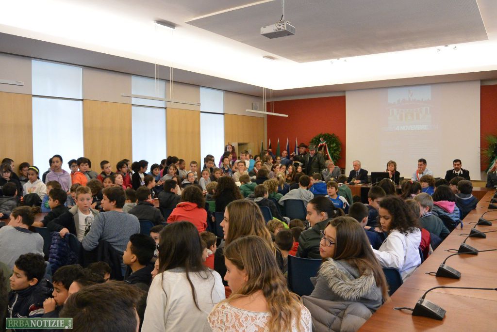 Il programma prevedeva dapprima la messa di suffragio e poi il corteo fino al monumento ai Caduti per la cerimonia ufficiale, ma, visto il maltempo, dopo la benedizione di don Giovanni Afker, autorità e ragazzi delle scuole erbesi si sono spostati in Comune.