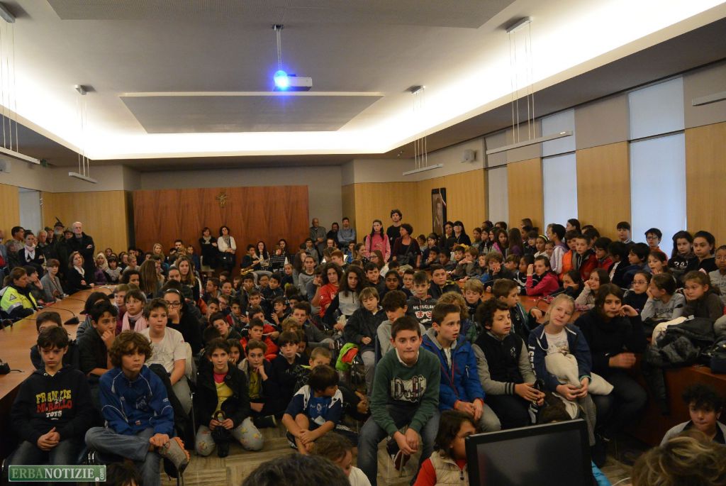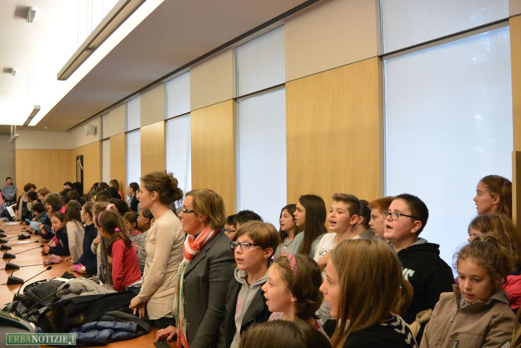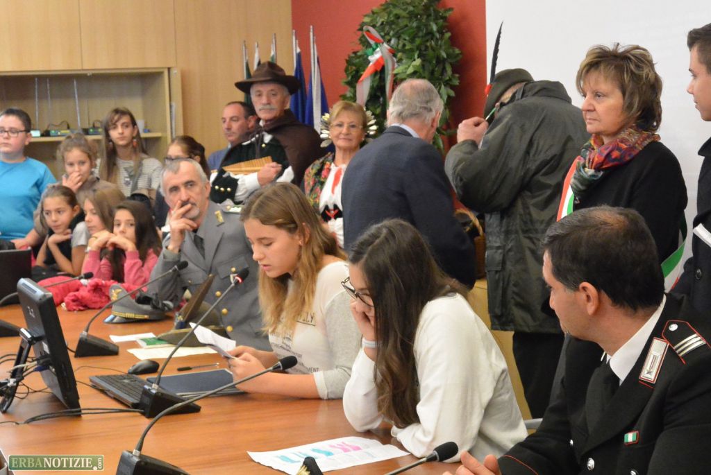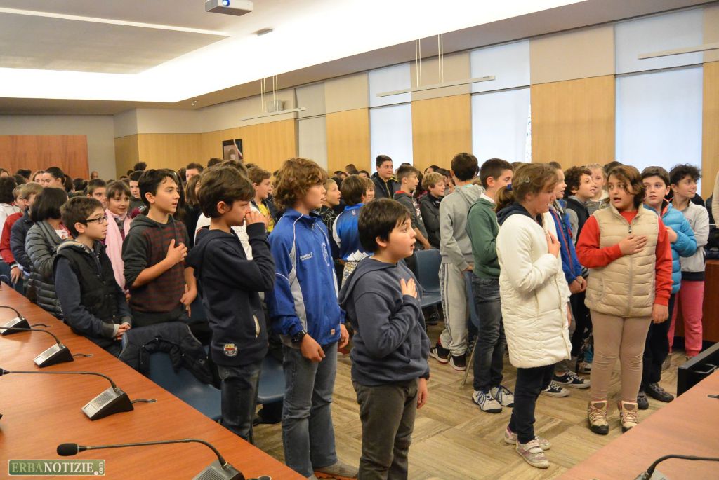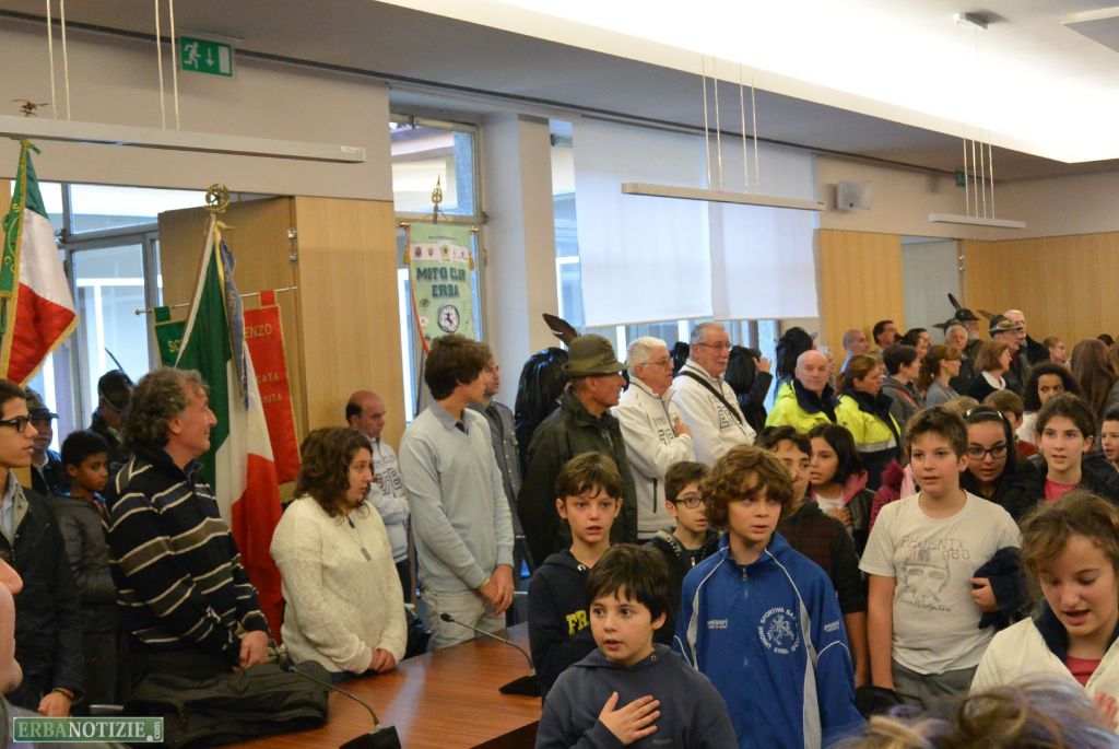 L’inno d’Italia suonato dai ragazzi del corso musicale della Puecher ha aperto, invece, la cerimonia in sala consiliare.