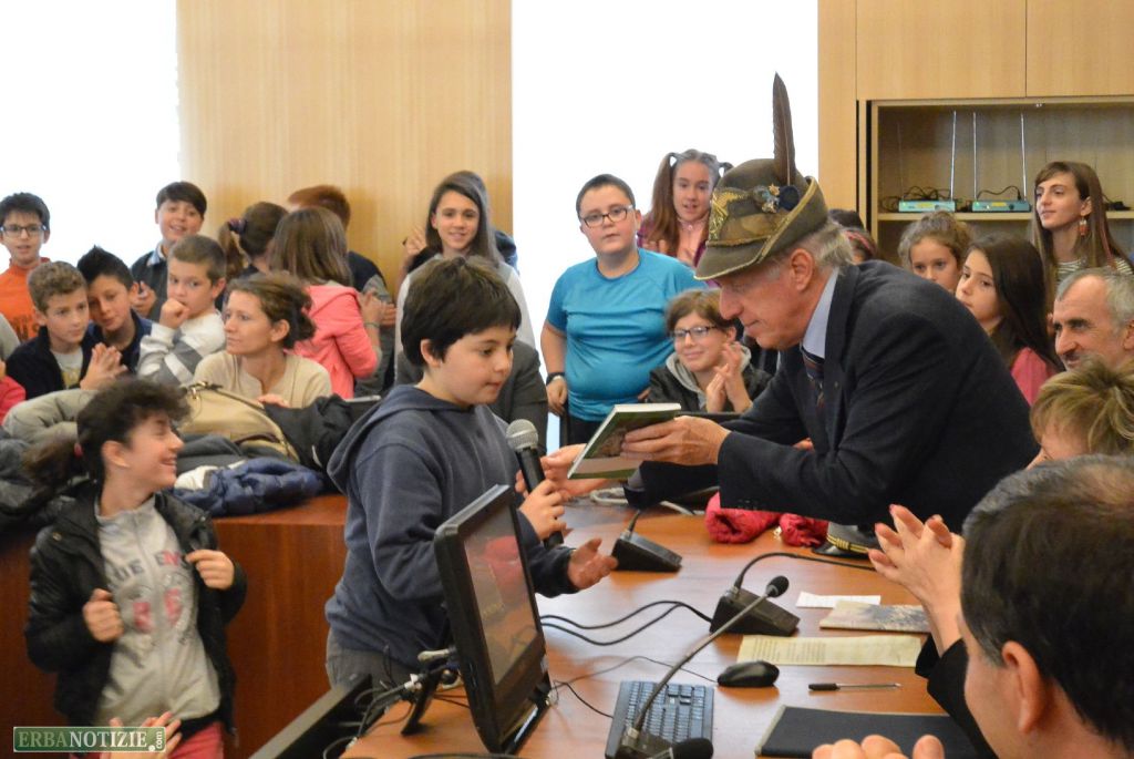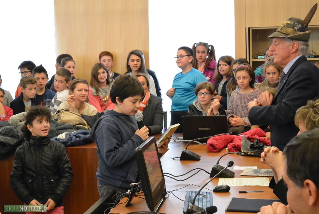 E’ seguito poi l’intervento di Gregori. “Oggi è un momento da dedicare alla memoria perciò dobbiamo essere attenti – ha spiegato ai ragazzi – Con la quinta di Crevenna, un anno fa, abbiamo avviato un percorso dedicato ai Caduti. I ragazzi ci hanno comunicato la volontà di costituire un gruppo che proseguirà l’approfondimento avviato in classe”. Gregori ha quindi voluto cercare lo stesso impegno nei ragazzi che aveva di fronte oggi, distribuendo loro due libri e invitandoli a lavorarci. “Le conseguenze della Guerra le paghiamo ancora oggi – ha concluso – Siamo qui perchè è nostro dovere ricordare coloro che sono morti anche contro la propria volontà”.