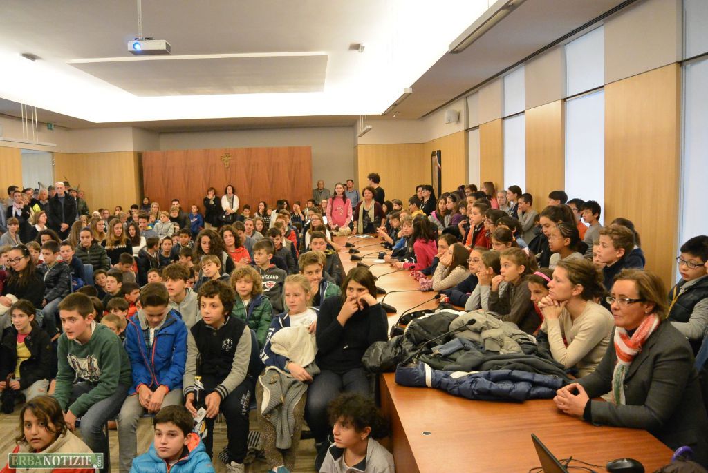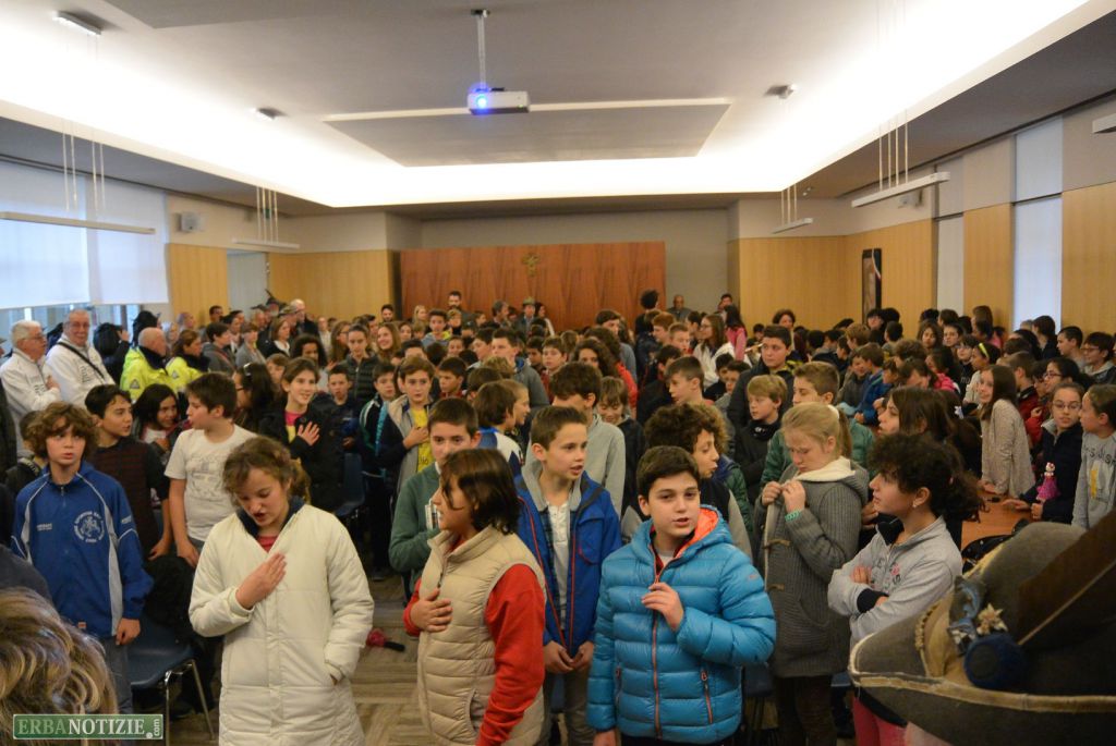Dopo l’intervento del sindaco, affiancato da Carlo Tafuni in fascia tricolore come rappresentante dell’Amministrazione albavillese di cui è assessore, i ragazzi della San Vincenzo hanno letto alcuni passi sulla Guerra.