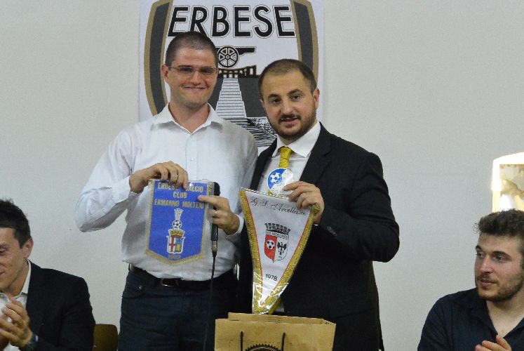 A intervenire, durante la presentazione, è stato anche il vicepresidente dell’Arcellasco, Matteo Isella: ” Innanzitutto voglio esprimere a questi giovani i miei complimenti, avete fatto una scelta davvero coraggiosa e avete un nome davvero importante. Vi auguro tutto il bene per questa vostra avventura. Personalmente  ero molto legato all’Erbese, anche se la mia fede ora è tutta biancorossa. I miei nonni, mio padre, erano tutti dell’Erbese e frugando tra i cimeli ho trovato queste cose che ho deciso di donarvi come augurio”. Isella ha infatti donato, oltre a un gagliardetto dell’Arcellasco in segno di amicizia sportiva, uno stemma originale della “vecchia” Erbese e un gagliardetto del club Erbese che portava proprio il nome del nonno di Isella. “Io ho un sogno: che Erba diventi un punto di riferimento per il calcio dilettantistico per i giovani. Mi sto battendo per questo da tempo e spero che anche con la vostra collaborazione si riuscirà a realizzarlo”.