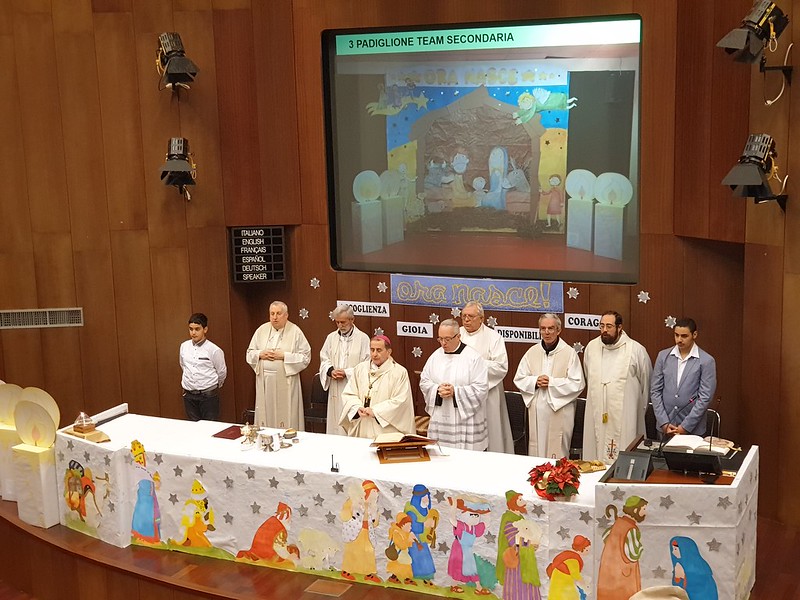 “Anche voi siete parte della moltitudine degli angeli, come l’angelo Serafino, che non sapeva cantare e allora svegliava i pastori con una carezza. O come l’angelo Poverino, che non sapeva giocare a pallone, scalare le montagne o usare il computer ma indicava col sorriso l’arrivo di Gesù. O ancora come l’angelo Che è lì vicino, che indicava la strada e sapeva dire la parola giusta a chi era stanco… Ecco, questi sono gli angeli che io ho incontrato, che sono venuti dal cielo ma, ne sono convinto, sono qui tra noi”.