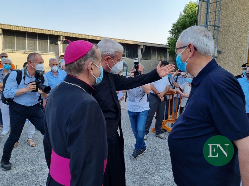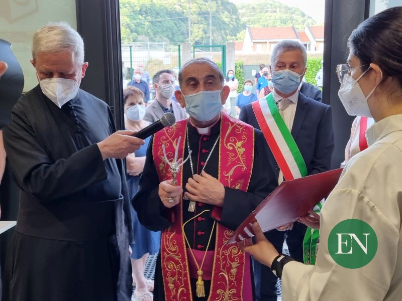 Insieme ai tanti fedeli, ai volontari e a due famiglie che usufruiscono del servizio, ad accogliere l’Arcivescovo sono stati mons. Angelo Pirovano, prevosto e decano di Erba, don Ettore Dubini, vicario di Crevenna e responsabile Caritas per la Zona III, don Stefano Dolci, parroco di Ponte Lambro, i sindaci di Ponte Lambro, Ettore Pelucchi, e di Erba, Veronica Airoldi, e il maresciallo dei Carabinieri, Gaetano Marco Ensabella.
