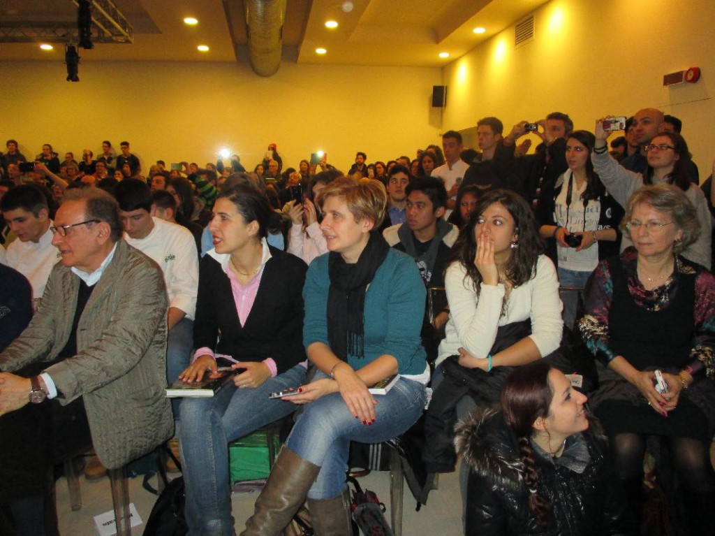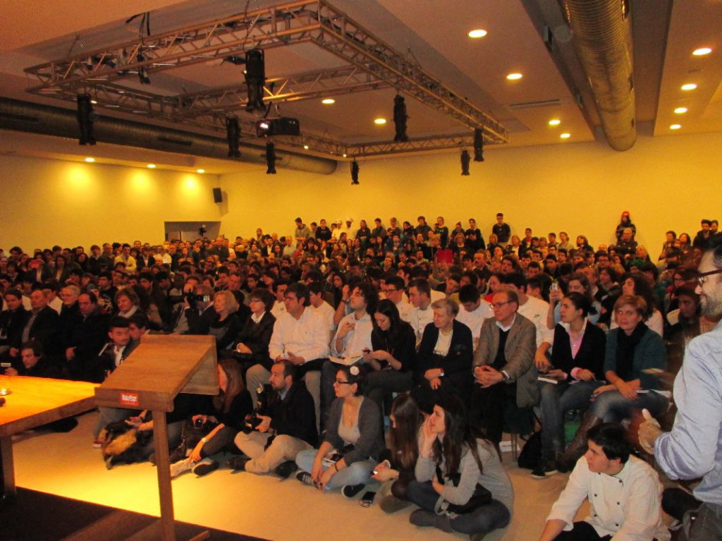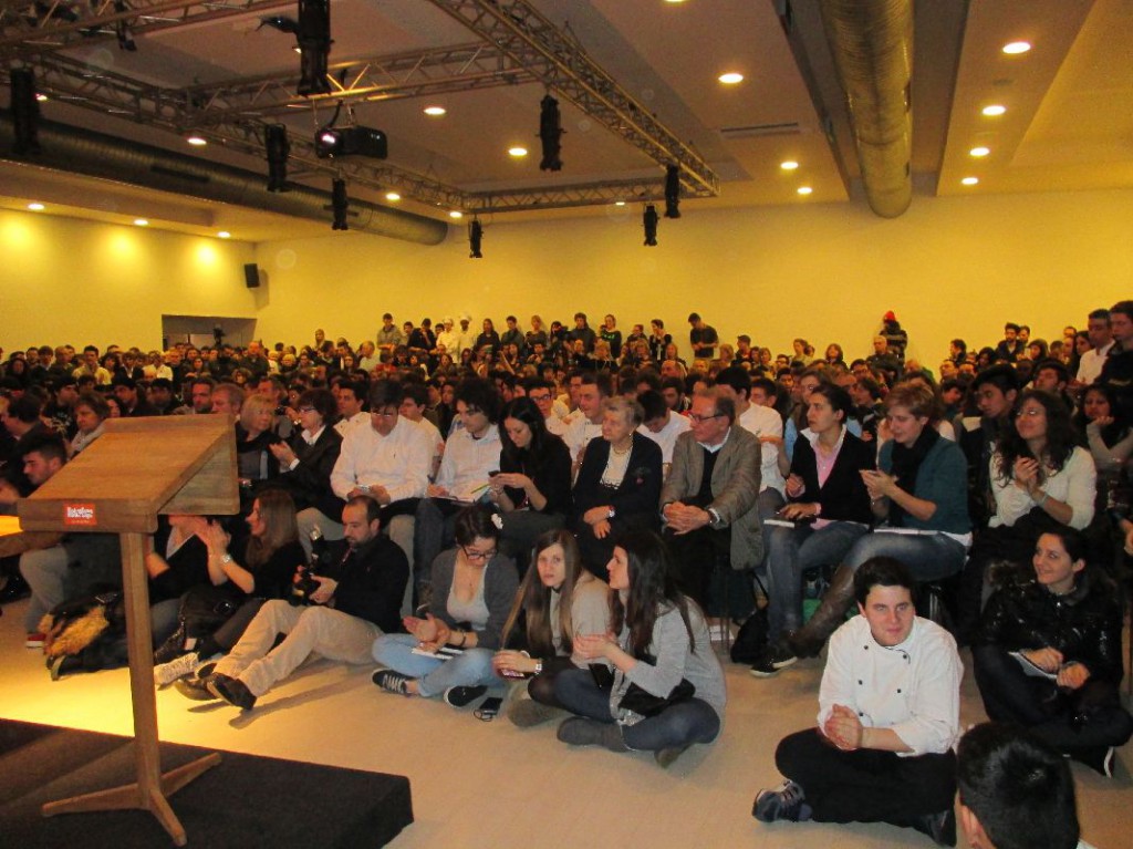 Dietro agli chef ci sono anni di duro lavoro, di studio: non si diventa certo Cracco da un giorno all’altro. “Voi siete più fortunati di me. Quando scelsi la scuola alberghiera, confesso, l’ho scelta perchè mi piaceva la scuola: era viola, ed era vicino alle montagne. Non ero mai entrato in una cucina e non sapevo minimamente come funzionasse. 32 anni fa non c’era internet, si usava il passaparola. Voi oggi con i computer potete scoprire il mondo. Io ero andato in Francia a lavorare, per cercare di capire ciò che era la novità . Consiglio a tutti voi di girare, girare tanto: aiuta ad aprire la mente. Vedere e sperimentare le altre cucine, molto differenti dalla nostra vi aiuterà , una volta rientrati in Italia, a capire quanto vale la cucina italiana“.