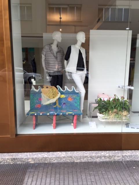 Le panchine realizzate dai bimbi erbesi in vetrina in città