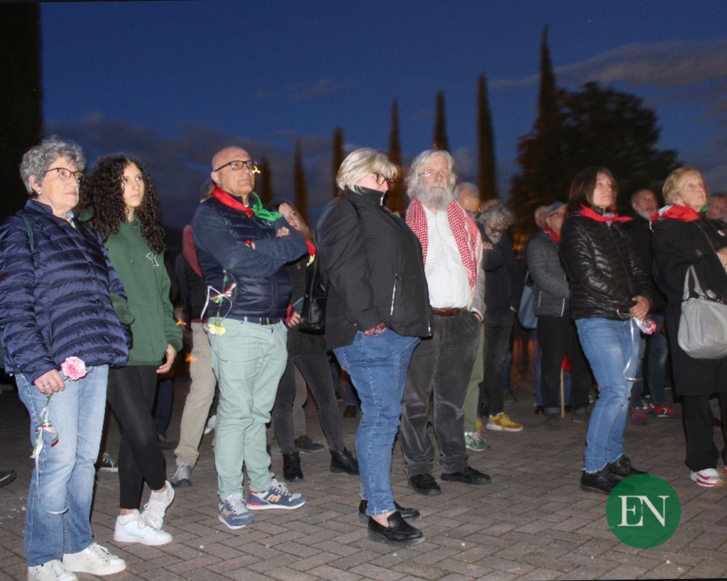 “Siamo alla vigilia di una data fondamentale della nostra storia per il presente e il futuro di tutti noi – ha proseguito – Sono passati 80 anni da quel 25 aprile e sappiamo che ogni anno è nostro dovere esserci, ricordare e parlare. La Liberazione ha visto protagonisti donne e uomini che hanno dato il loro fondamentale contributo, con coraggio e determinazione, alla cessazione di un regime violento che ha deciso della vita e della morte di migliaia di persone nel nostro paese, per questo è importante ricordare chi ha lottato per fare in modo che il regime nazifascista finisse.