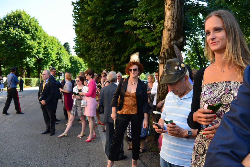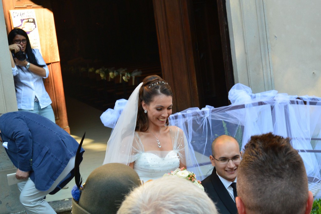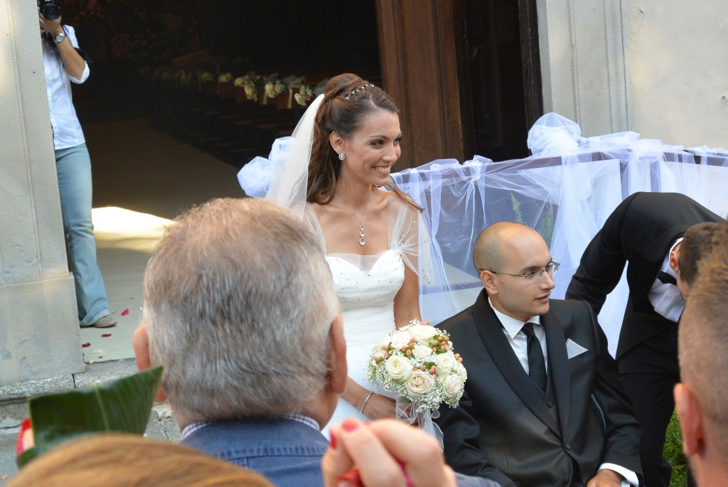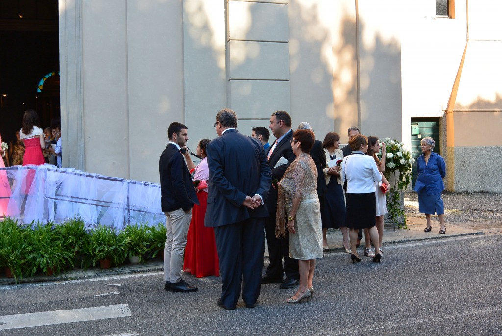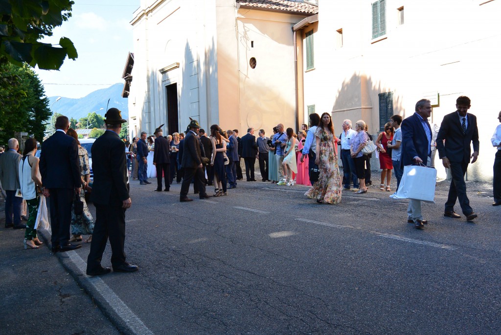 Finita la cerimonia, gli sposi sono stati accolti da parenti e amici all’esterno della chiesa, sulla strada, chiusa al traffico da Polizia locale e Carabinieri, per il lancio dei petali dei fiori. Poi tutti al Castello di Casiglio per il ricevimento.