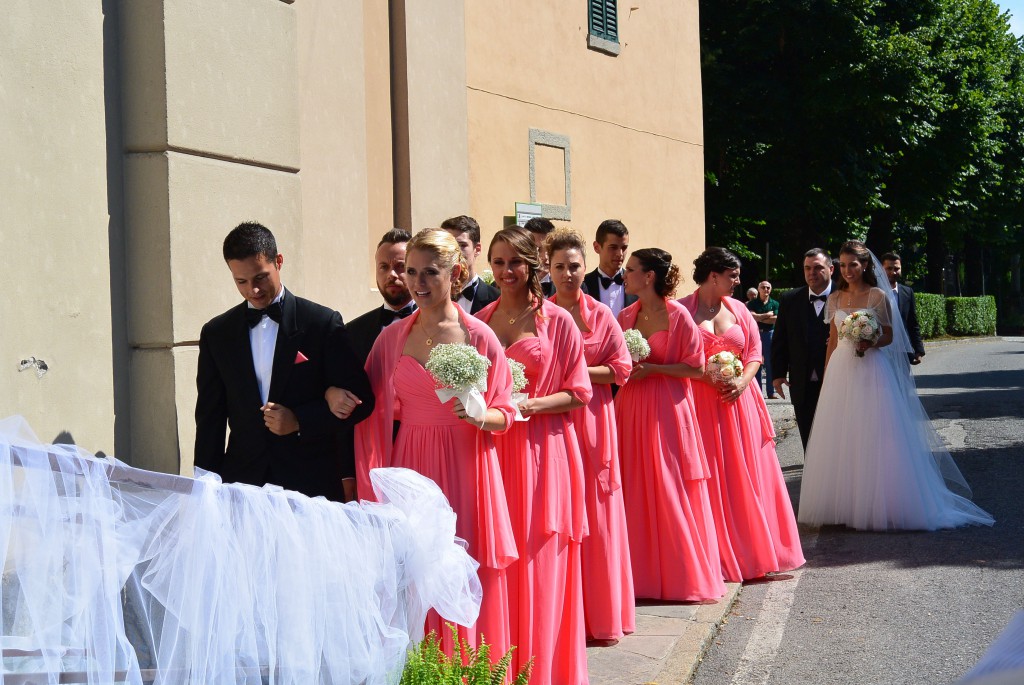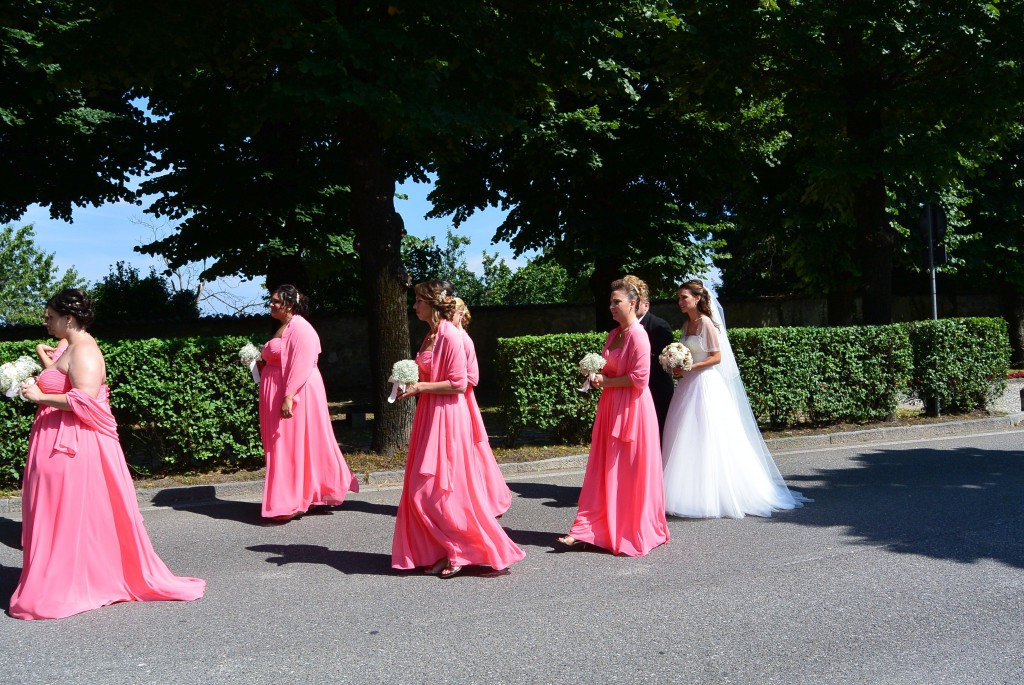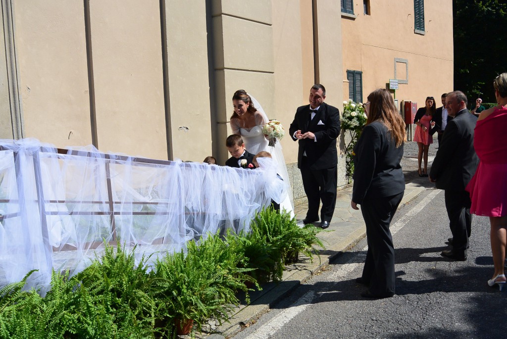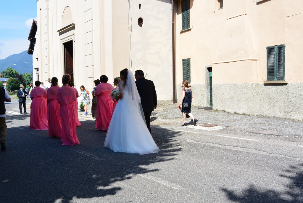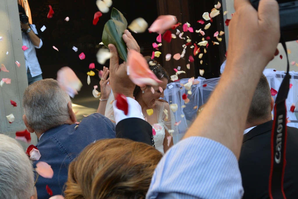Finita la cerimonia, gli sposi sono stati accolti da parenti e amici all’esterno della chiesa, sulla strada, chiusa al traffico da Polizia locale e Carabinieri, per il lancio dei petali dei fiori. Poi tutti al Castello di Casiglio per il ricevimento.