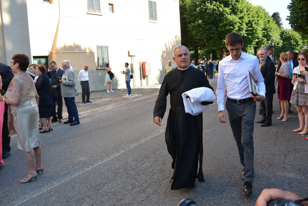 Prima del termine della cerimonia, don Alessandro ha chiamato sull’altare il rappresentante dell’Amministrazione erbese, il vicesindaco Claudio Ghislanzoni, che ha portato gli auguri della città agli sposi. “Lo stupendo coronamento della vostra bella storia d’amore si compie nella nostra città – ha affermato rivolgendosi ai coniugi – Erba rimarrà nel vostro cuore come il luogo di uno dei momenti più felici della vostra vita e noi erbesi, a nostra volta, sapremo rinnovarvi il nostro affetto ogni volta che vorrete tornare a trovarci“.