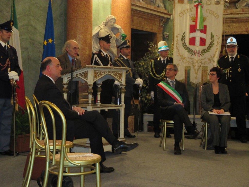 La cerimonia, organizzata dalla Prefettura di Como,  in collaborazione con l’Amministrazione comunale, ha visto partecipare molte autorità, tra cui il sindaco Mario Lucini e diversi membri dell’Amministrazione. Ma anche le Forze dell’ordine: Carabinieri, Polizia, Fiamme Gialle e i sindaci di numerosi Comuni della provincia di Como.