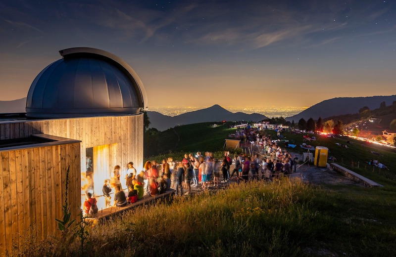 Un tramonto da favola ha poi galvanizzato l’attesa per accedere per la prima volta in esclusiva alla visita parziale del nuovo Osservatorio/Planetario dove da pochissimi giorni è stato installato un nuovo telescopio da 70 cm Officina Stellare completo di astrografo 20cm Artesky su montatura AZ6000 10Micron. “Due aziende italiane, la seconda Brianzola, divenute leader mondiali in pochi anni grazie alla grande passione dei titolari. Per evitare l’interminabile coda che si sarebbe formata moltissimi erano già ai cancelli prima che facesse buio”.