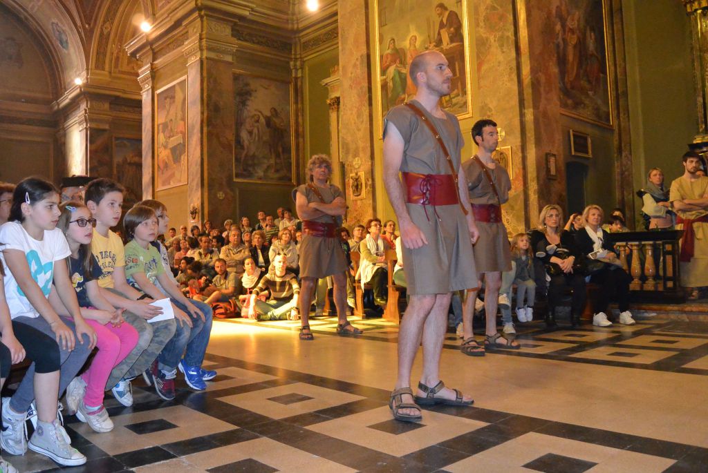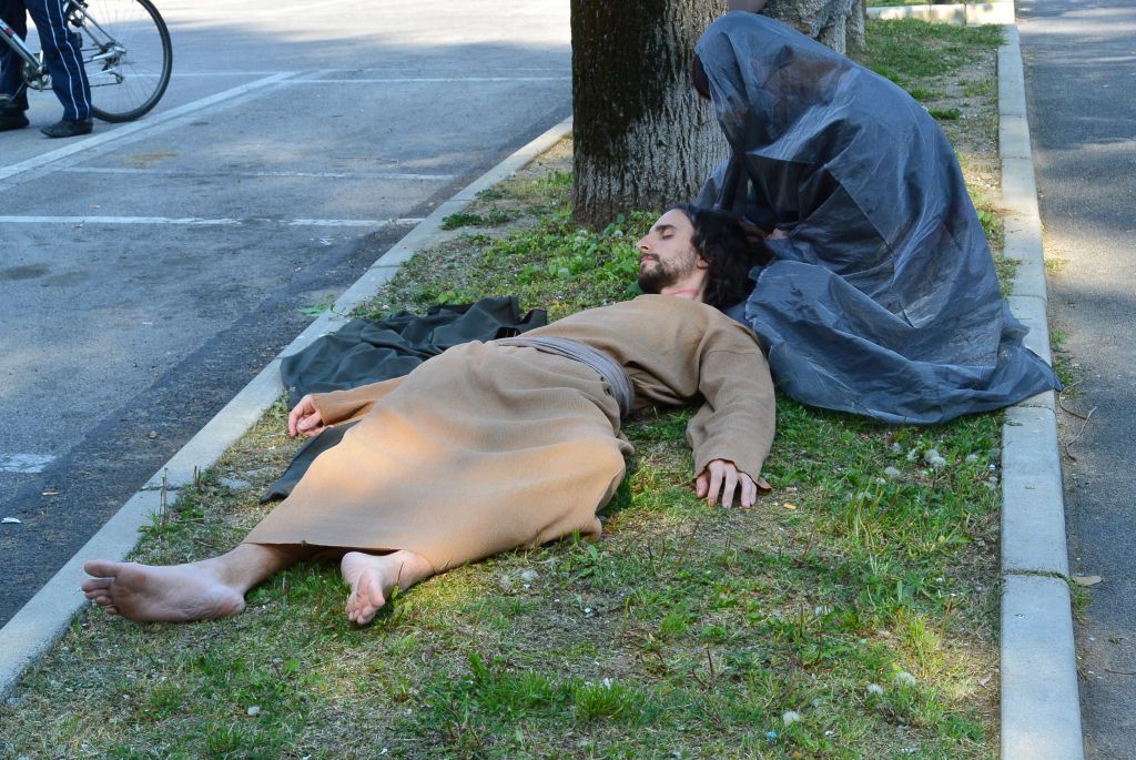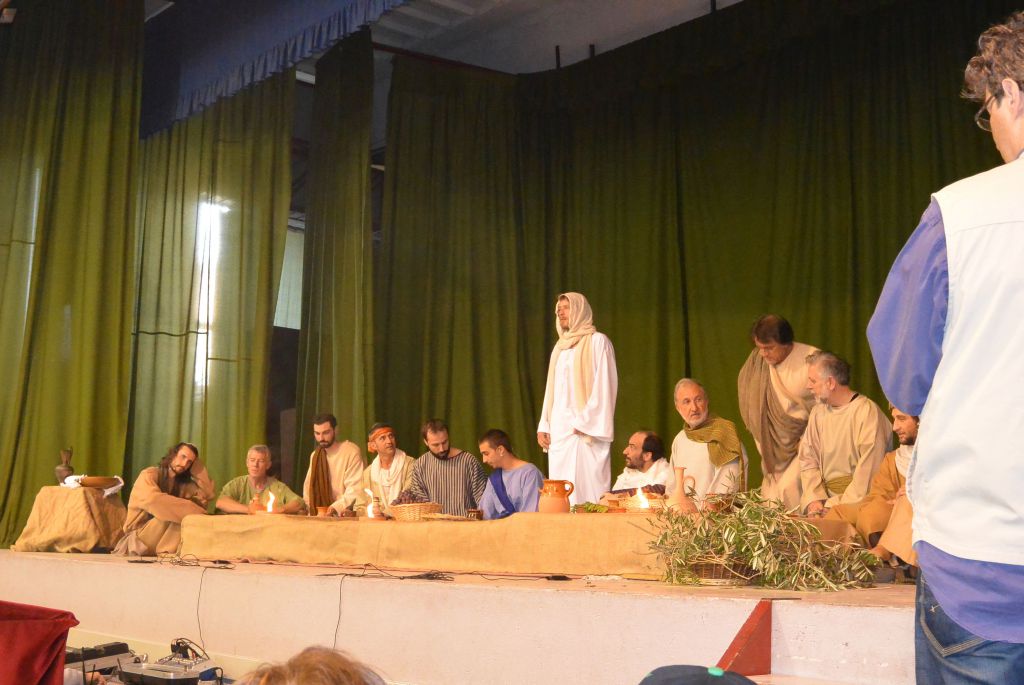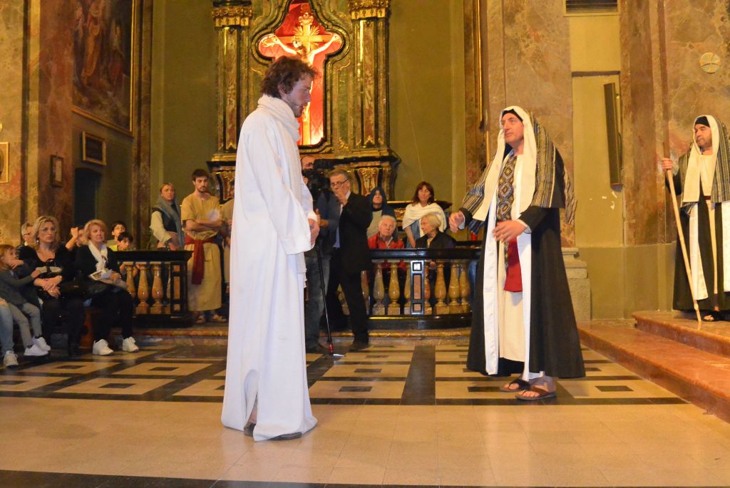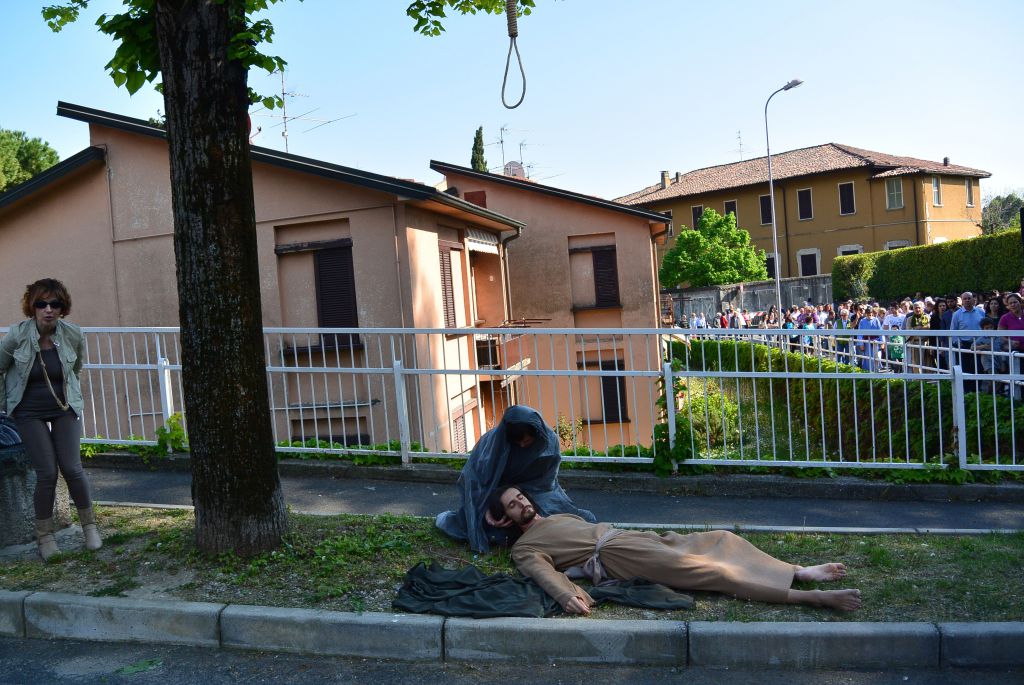 Gli attori, un centinaio tra comparse locali e qualche professionista, hanno condotto il pubblico in un percorso fatto di 9 tappe dislocate per le strade di Eupilio, dalla chiesa di San Giorgio in Corneno fino ai padri barnabiti: sinedrio, ultima cena, getsemani, Pilato, Erode, prima, seconda e terza caduta e crocifissione.