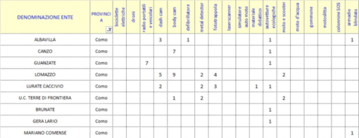 Ecco nel dettaglio le dotazioni previste per i comandi di Polizia Locale nei Comuni della Provincia di Como: