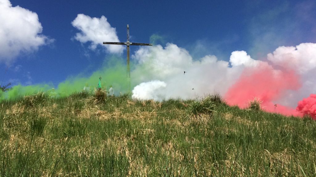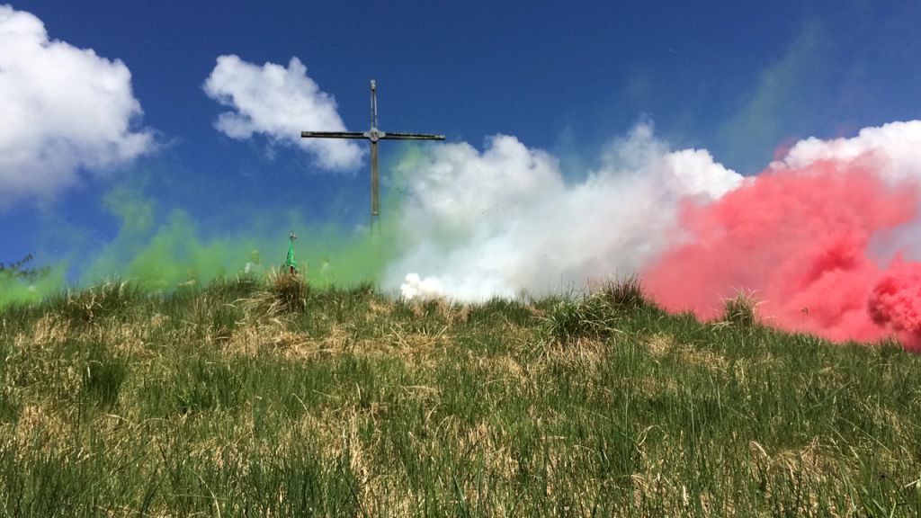 Al termine della messa, lo spettacolo suggestivo dei fumogeni tricolore che ha riscosso i complimenti anche dei tanti pontelambresi che sono rimasti in paese e hanno assistito dal basso all’evento. Sul monte è salito anche il sindaco Andrea Cattaneo.
