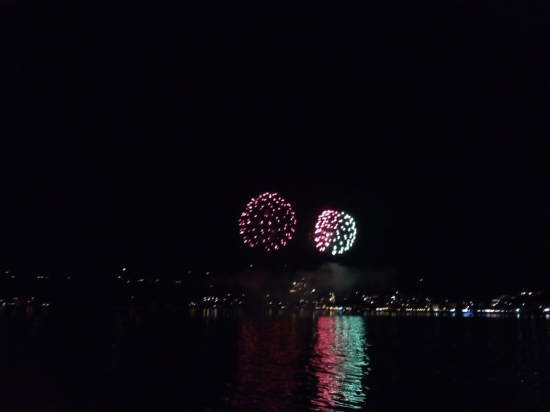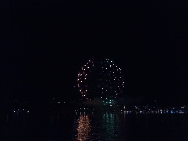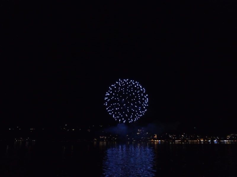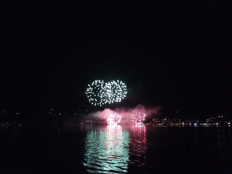 Ma vera e propria chicca della manifestazione è stato il magnifico spettacolo di fuochi d’artificio che anche quest’anno ha incantato gli spettatori che a migliaia si sono riversati sulle sponde del lago, a Pusiano e nei paesi limitrofi: puntuali alle 22.15 i primi colpi hanno dato il via a un susseguirsi di colori e luci, che tanto nel cielo scuro quanto sulla superficie dell’acqua, hanno illuminato di magia la tiepida notte. Scrosciante l’applauso che si è alzato dalle sponde al termine dello spettacolo.