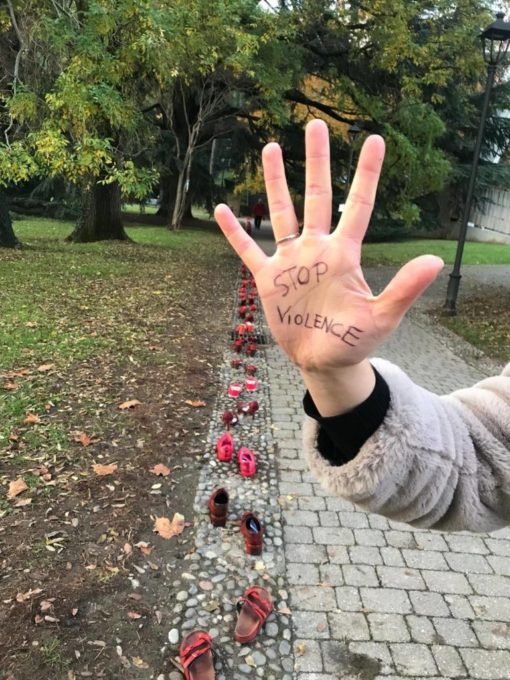 Presso il Parco Majnoni di Erba i ragazzi del gruppo hanno curato l’allestimento dell’opera “Zapatos Rojos” di Elina Chauvet: “Ci siamo dati da fare per raccogliere, dipingere e colorare di rosso più di 120 scarpe poi disposte poi in una marcia silenziosa lungo i vialetti del Parco – hanno spiegato – Abbiamo anche installato il cartello di Posto Occupato, per ricordare tutte le donne che, prima di essere uccise, occupavano un posto nella società”.