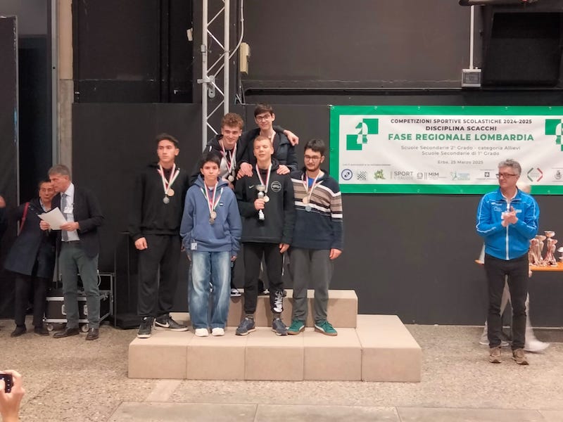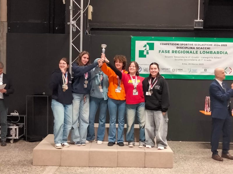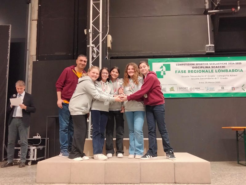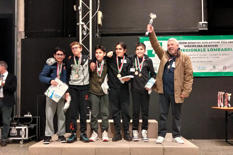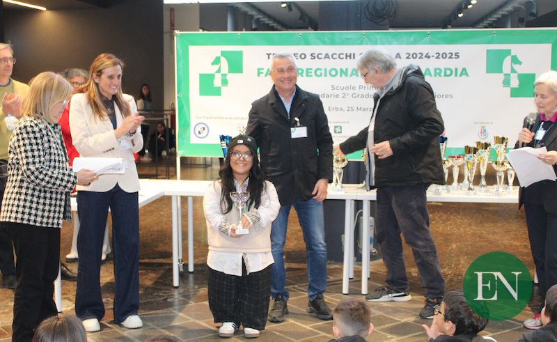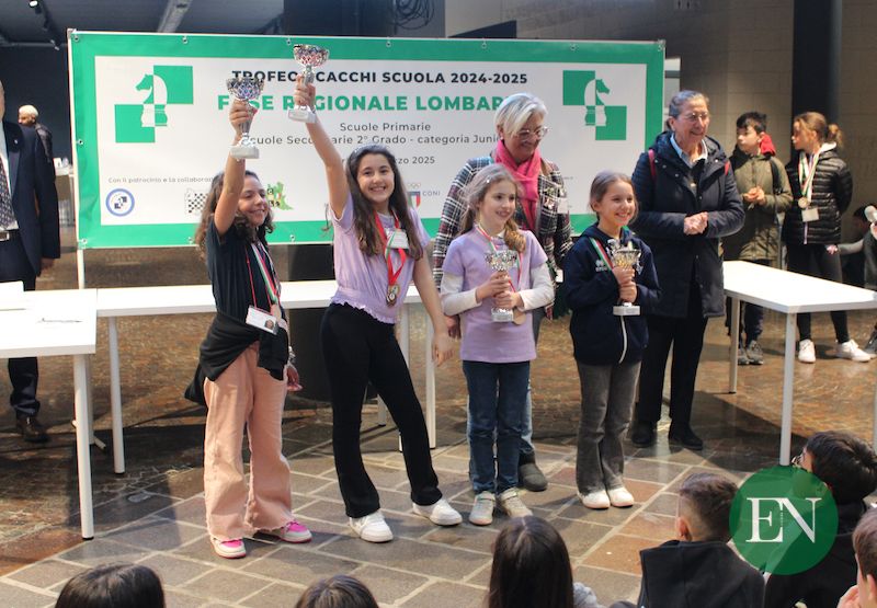 ERBA – Grande entusiasmo alle premiazioni per le finali del “Trofeo Scacchi Scuola 2025 – fase regionale“, organizzato dall’Associazione Sportiva Dilettantistica I.S.V. Sport di Erba con il patrocinio del Consiglio regionale della Lombardia. In totale hanno partecipato in 523 studenti tra bambini e ragazzi alle sfide tenutesi a Lariofiere nella giornata del 25 marzo. Nel dettaglio: 97 squadre di cui 44 ai campionati giovanili studenteschi – Allievi e scuole secondarie di I grado – e 53 squadre tra primarie e Juniores. I vincitori andranno alla fase nazionale che si svolgerà a Montesilvano in Abruzzo dal giorno 11 al 14 maggio.