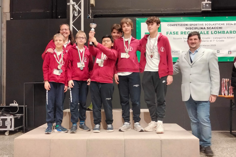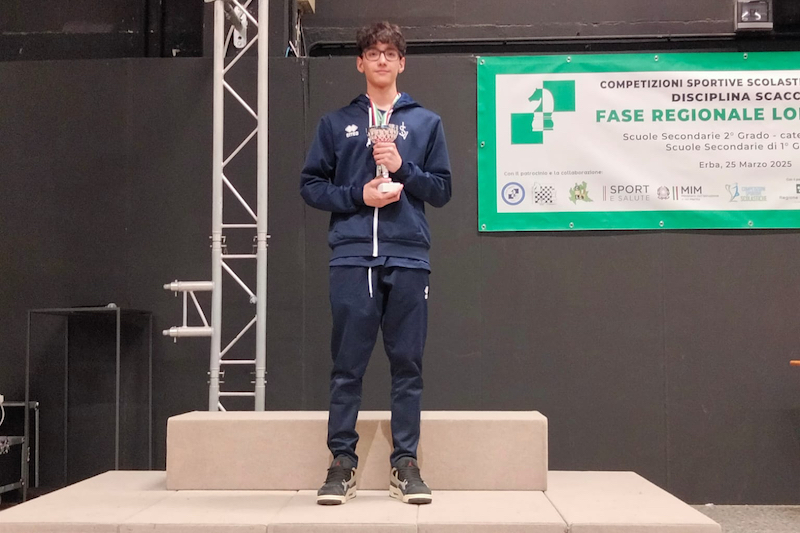 Mentre, l’Istituto San Vincenzo di Erba è arrivato terzo nella categorie a squadre maschile/mista per le secondarie di I grado con Bai, Tan, Arcuri, Pelucchi e Briscese. Gran terzo posto per Pietro Arcuri alla categoria miglior scacchiera. Infine, nella primarie miglior scacchiera assoluta Airoldi Celeste Maria.
