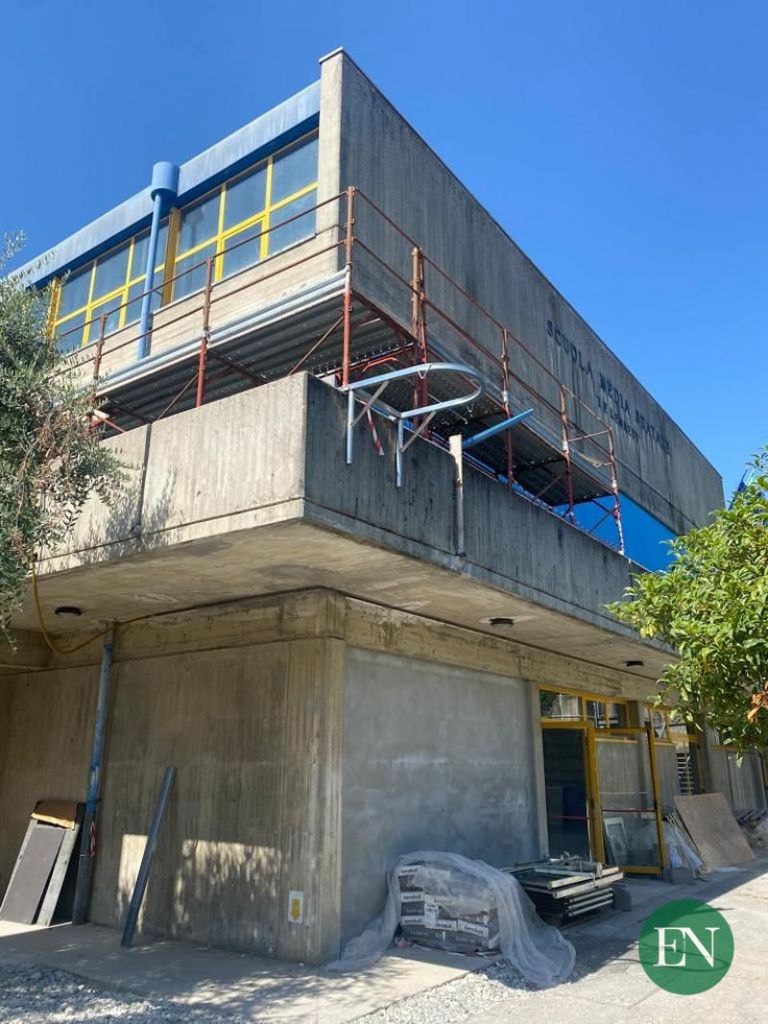 “Il cantiere – spiega il geometra Antonio Silvestro di Si.ge.co Costruzioni Srl, l’impresa che sta eseguendo i lavori – è cominciato con i lavori di adeguamento strutturale, quindi il rinforzo di pilastri e travi e poi della sottostruttura. Internamente abbiamo svolto anche lavori di messa in sicurezza delle scale, l’innalzamento dei parapetti. Stiamo ultimando tutte le opere interne, infissi e imbiacamento finale, per consegnare agli studenti prossimi al rientro a scuola un edificio completamente ristrutturato, funzionale ed ecologico”.
