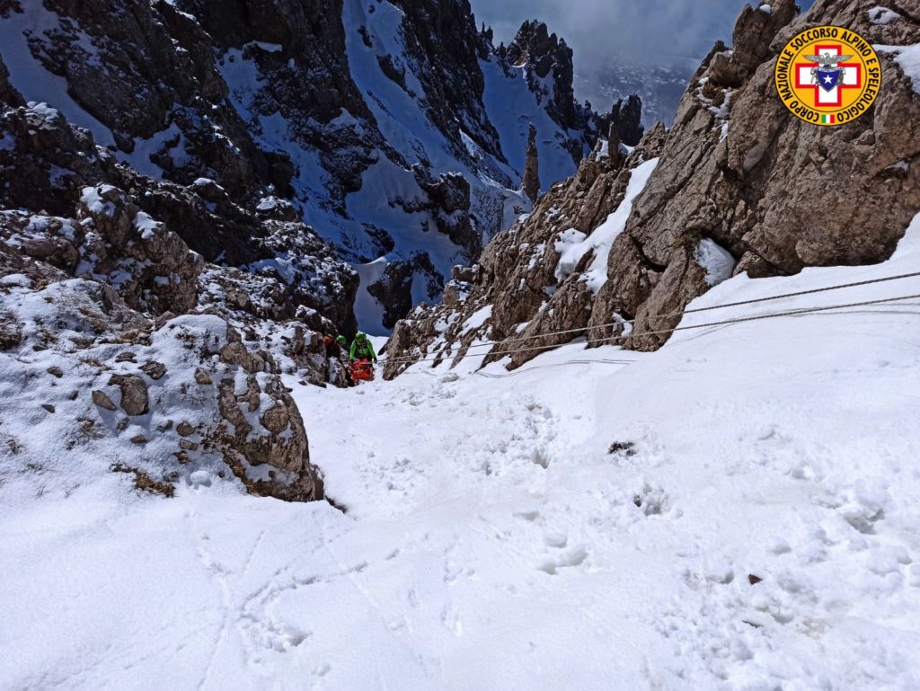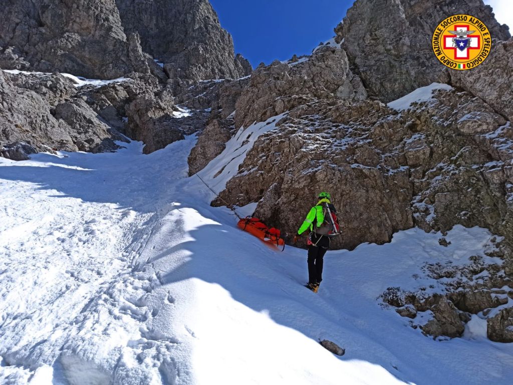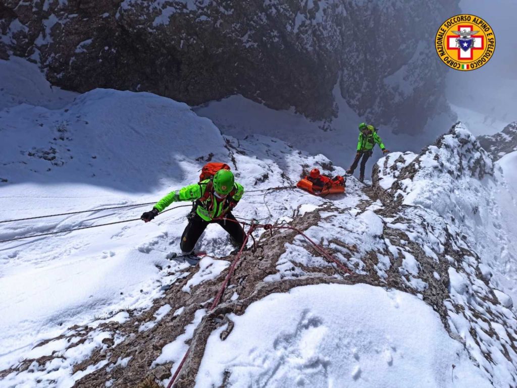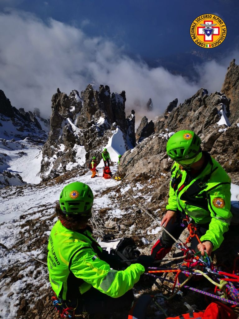 L’esercitazione si è svolta proprio sulla sommità e ha riguardato il recupero di un ipotetico infortunato, caduto in un canale. Dopo avere eseguito il recupero per mezzo del paranco, i soccorritori hanno compiuto la discesa con delle calate, utilizzando la barella Kong in abbinata con la barella Sked.