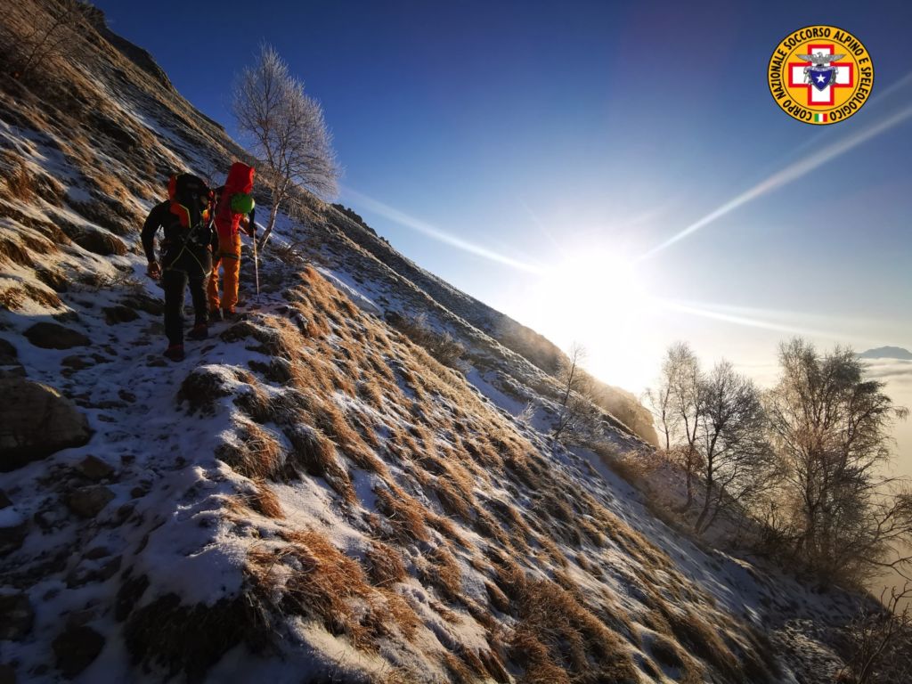 I tecnici sono saliti in Grignetta per la direttissima e poi lungo il canale Cecilia.