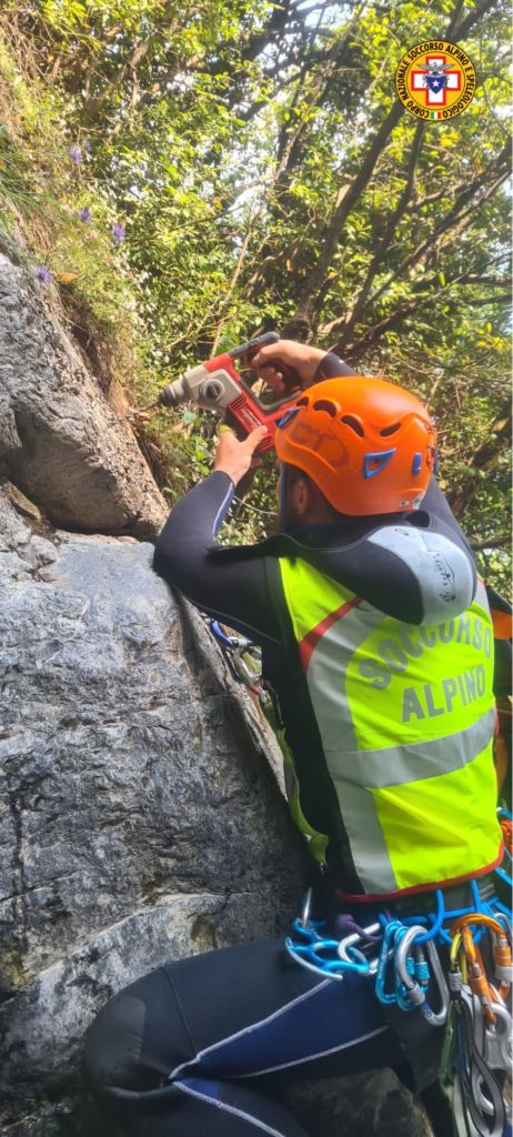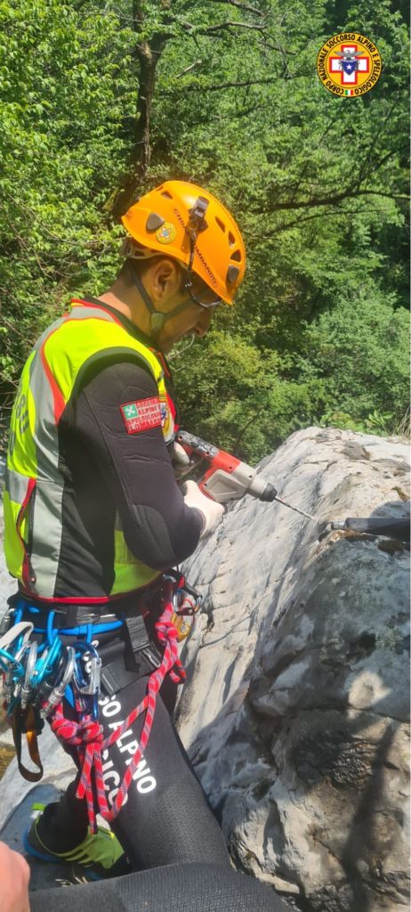 Nelle due giornate appena trascorse i tecnici, con la supervisione di due istruttori regionali del Cnsas, hanno messo a punto l’utilizzo pratico di alcuni strumenti, come per esempio perforatori manuali e trapani a batteria, e di quei materiali adatti a costruire ancoraggi idonei alla progressione.