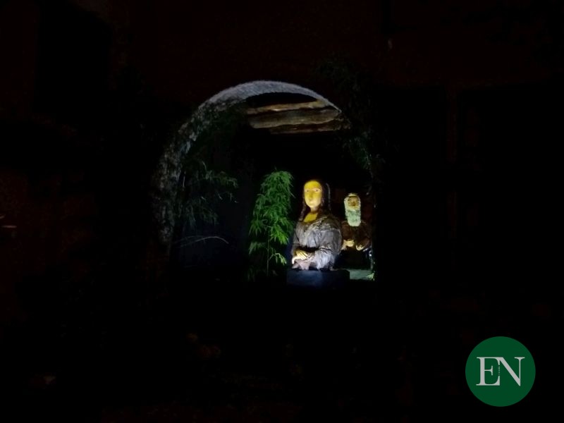 Ad aprire la serata, l’inaugurazione del cortile dedicato al 500° anniversario della morte di Leonardo: nella magica cornice della corte di Giuann di Baita, infatti, il gruppo degli Amici del Presepe guidati da Angelo Garofoli ha allestito le riproduzioni in tre dimensioni dell’affresco dell’Ultima Cena e del quadro della Gioconda, rivisitato con il volto di Leonardo sul retro. Stoffa, legno, carta, quintali di colla, tanta passione e fantasia per realizzare queste opere che hanno letteralmente lasciato a bocca aperta i presenti.