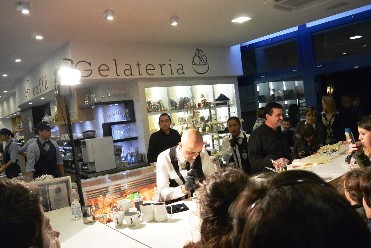 Ieri, venerdì 8 novembre, tante persone, incuriosite, si sono strette attorno al bancone del Vago per ammirare le creazioni di Gianni Cocco e Danilo Torres, i baristi vincitori del Guinness World Record.