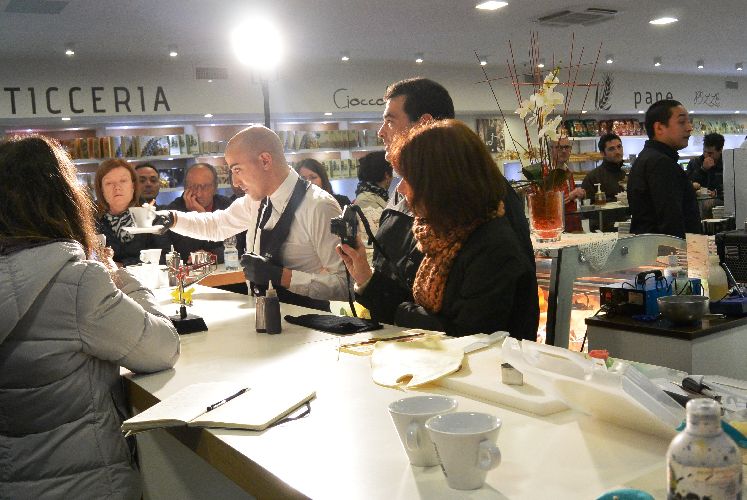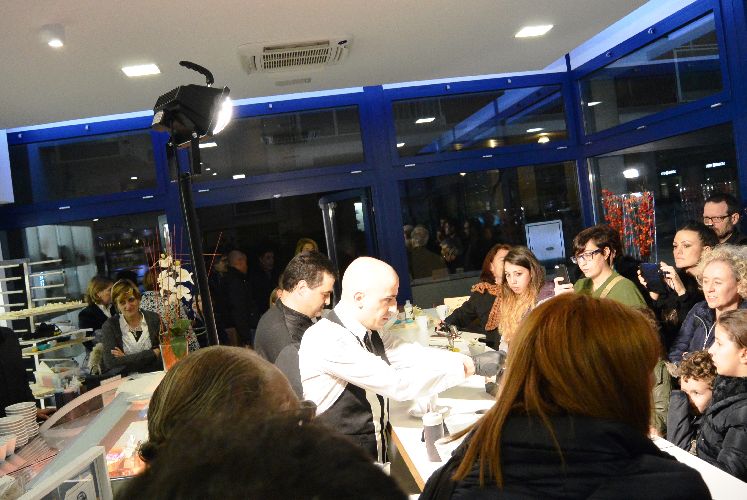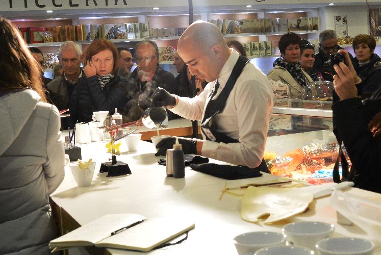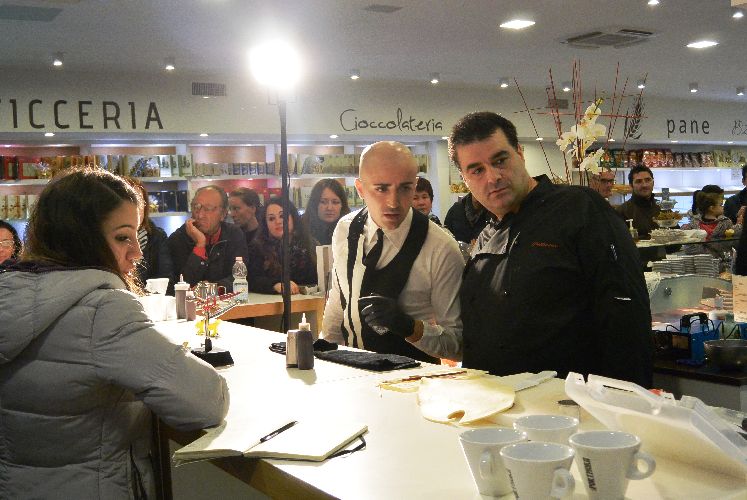 Il pubblico ha potuto seguire le varie fasi di preparazione dei cappuccini colorati ma ha potuto lustrarsi gli occhi anche con la pasticceria di Ciro Mellone.