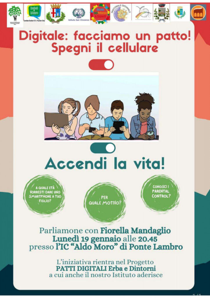 L’incontro rientra nel Progetto Patti Digitali Erba e Dintorni, un percorso condiviso a cui aderisce anche l’istituto scolastico ospitante e che punta a costruire alleanze educative sul territorio, partendo dalla consapevolezza che il tema del digitale non riguarda solo i ragazzi, ma l’intera comunità.