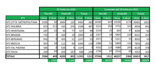 COMO – Nella giornata di ieri, giovedì 25 febbraio, hanno ricevuto la prima dose di vaccino anti-Covid nell’ambito della fase ‘1 ter’ 7.094 anziani a cui si aggiungono i 409 che hanno ricevuto la seconda dose di vaccino, per un totale di 7.503 dosi somministrate agli over 80.