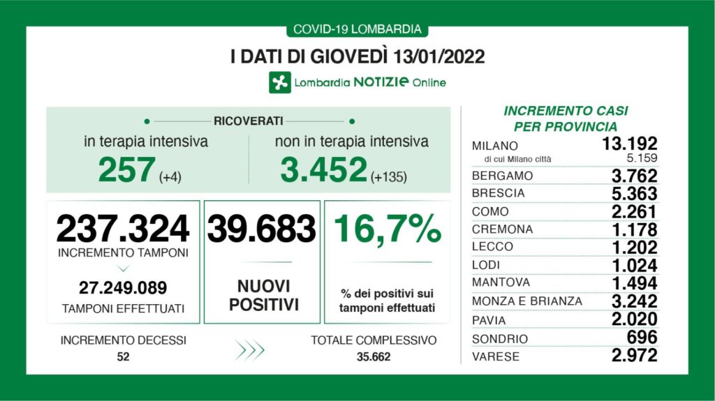 Covid. Da avvio ‘task force’ in Lombardia 200 mila tamponi al giorno