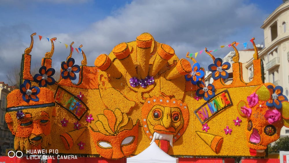 La domenica il gruppo si è diretto verso Mentone, per assistere alla festa dei limoni, che si tiene dal 1933. Nel 1929, la città di Mentone è ancora la prima produttrice di limone in tutto il continente. Un albergatore ebbe l’idea di organizzare un’esposizione di fiori ed agrumi nei giardini dell’Hotel Riviera.