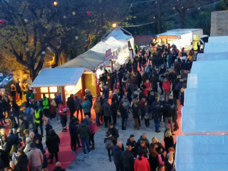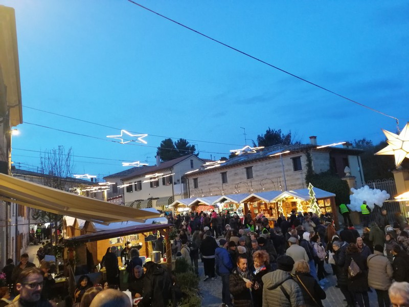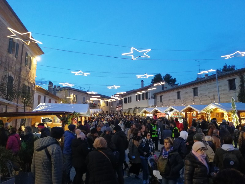 La due giorni è iniziata con il trasferimento, sabato 23 novembre, nel piccolo borgo di Candelara dove da 16 anni si tiene il tipico mercato natalizio delle candele. Ogni sera durante questo periodo la luce artificiale lascia il posto per 15 minuti alla luce delle migliaia di candele presenti, uno spettacolo unico seguito da un lancio di palloncini con luci a led all’interno. Le candele da oltre due secoli sono lo stemma del paese.