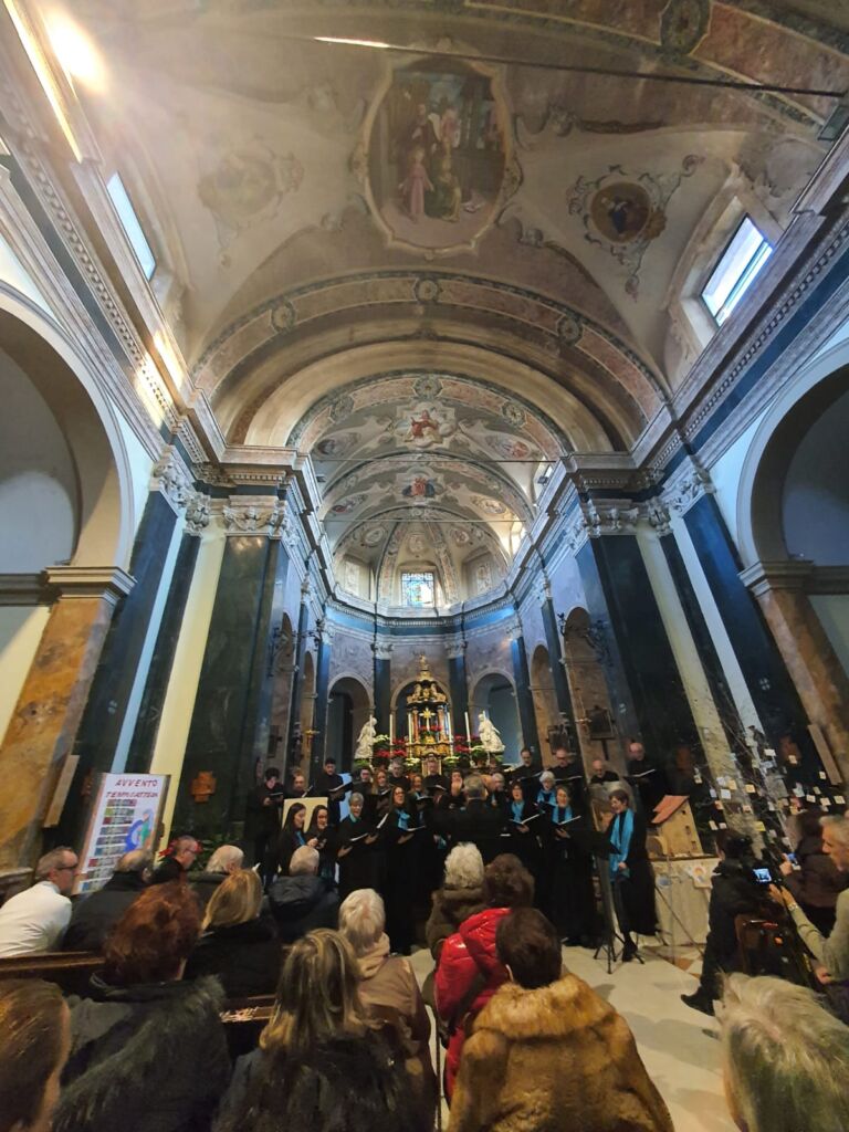 Protagonista del pomeriggio è stato il Discanto Vocal Ensemble, formazione associata a Cori Lombardia APS, presentata come “una realtà che fa della passione e della ricerca vocale il proprio segno distintivo”. Il gruppo ha proposto un repertorio pensato per il periodo epifanico, accompagnando il pubblico in un percorso musicale coerente con il contesto liturgico e con il clima delle festività. “Siamo pronti a lasciarci trasportare dalle loro voci in questo ‘Concerto per l’Epifania’ “, avevano anticipato gli organizzatori, aspettativa che ha trovato riscontro nell’ascolto raccolto e partecipato dei presenti.