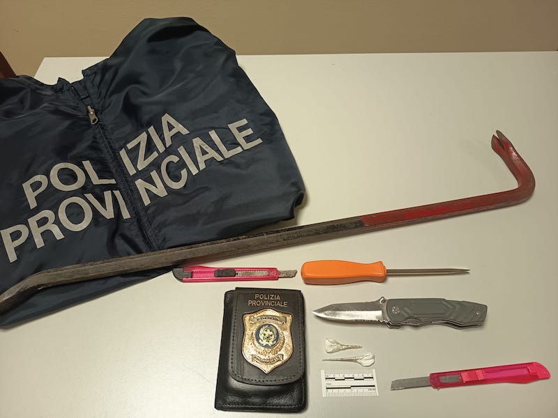 L’uomo è stato denunciato a piede libero per porto abusivo di armi, con conseguente sequestro degli attrezzi e sanzione amministrativa per il possesso della sostanza stupefacente.