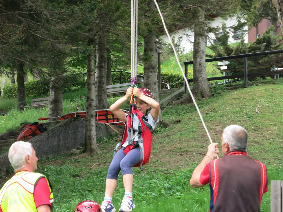Quindi i bambini hanno potuto svolgere tre attività pratiche e coinvolgenti, tutte in completa sicurezza: si sono calati da un albero ad un altro con il sistema della carrucola, sono stati issati con un imbrago su un albero ed infine hanno sperimentato l’uso della barella.