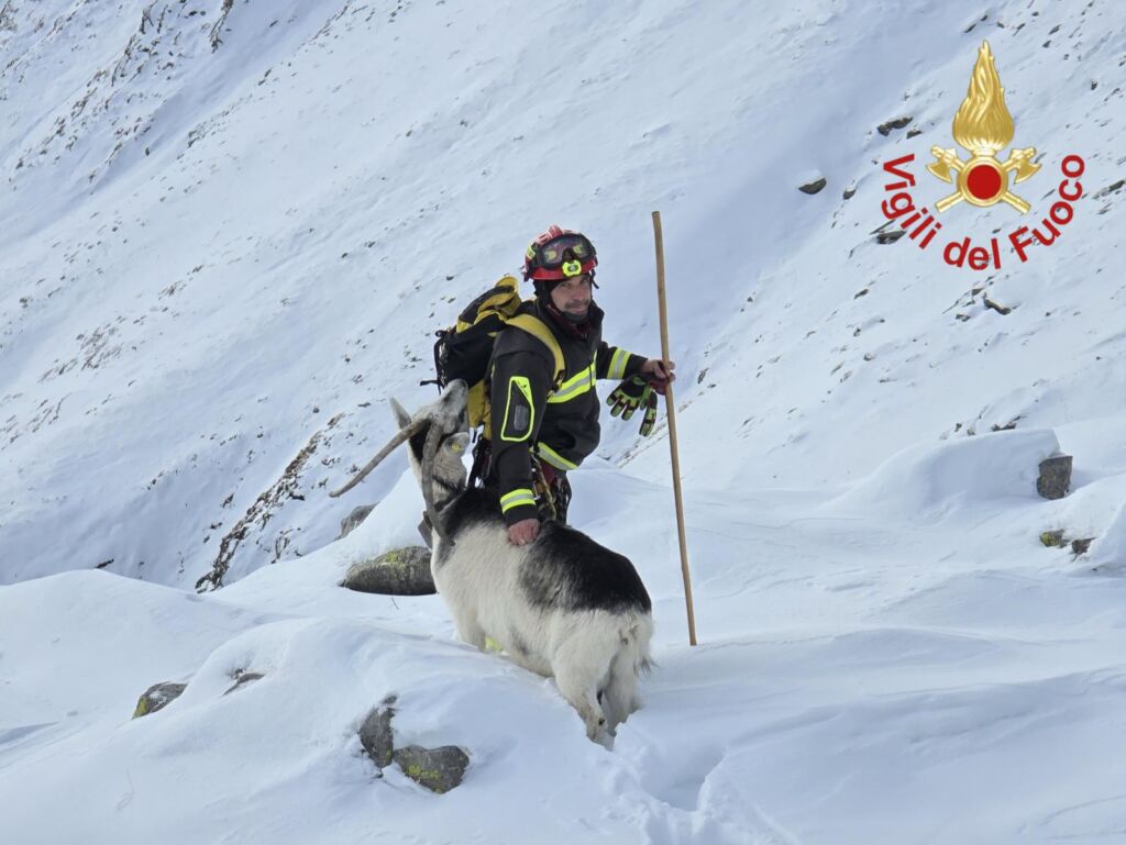 Nonostante ciò, l’elicottero ha trasportato le squadre SAF sul posto per tentare il recupero di quel poco che si pensava fosse sopravvissuto. Una volta sbarcati in quota, però, è arrivata la sorpresa: durante la ricognizione in corda gli operatori vigili del fuoco hanno individuato molti più animali del previsto. Con grande stupore e immensa gioia, grazie anche alla guida del padre e pastore, le squadre vigili del fuoco sono riuscite a radunare ben 37 capre, tutte in buone condizioni. Solo due risultavano predatate dai lupi.