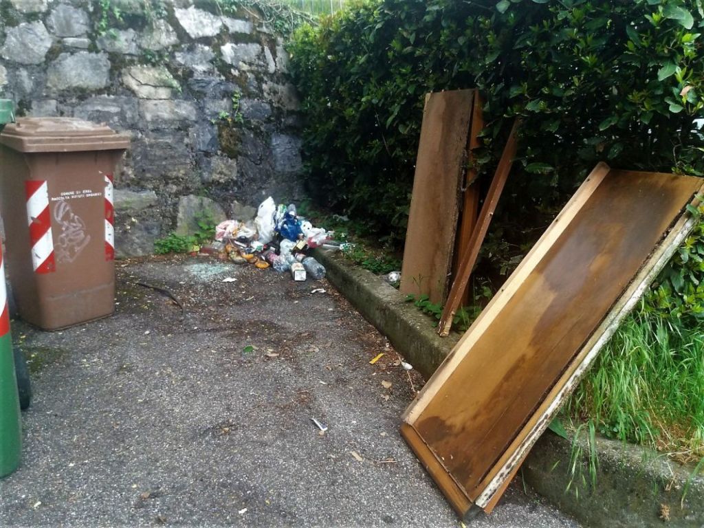 ERBA – Mobili rotti e rifiuti abbandonati nel parcheggio di via San Giorgio a Crevenna: è questo l’oggetto di una segnalazione inviataci da un nostro lettore che passeggiando per la frazione erbese si è imbattuto nella sporcizia lasciata nello spazio che ospita i cassonetti delle case vicine.